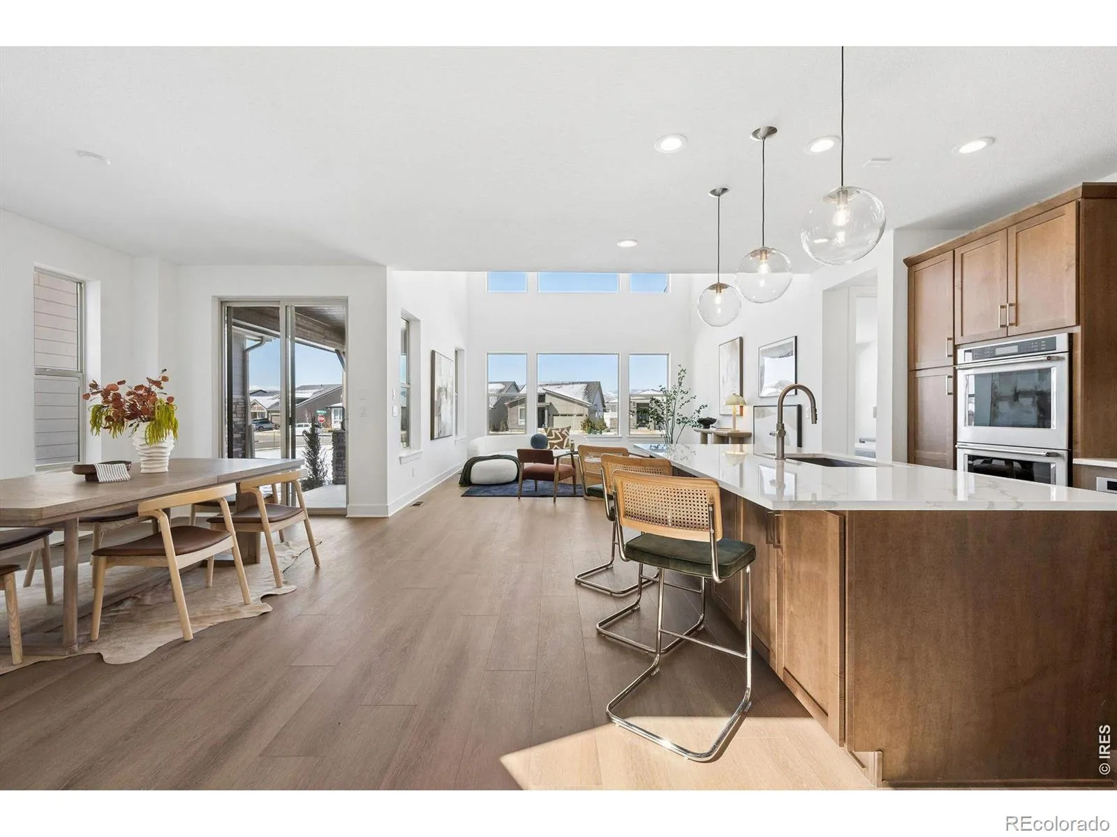 Welcome to Toll Brothers at Heron Lakes-where refined living meets Colorado’s premier PGA rated TPC golf experience. This new construction, beautifully crafted Haywood II Modern is a stunning 2 story home set on a coveted homesite backing to a tranquil greenbelt, offering premium outdoor views and close access to over 8 miles of trails! Inside, the home opens to a dramatic two-story great room with an impressive window display, open railing staircase, and a warm gas fireplace. A sliding door connects the great room to the expanded covered patio, creating effortless indoor/outdoor flow. The gourmet kitchen is a true centerpiece, an enlarged island, and curated designer finishes selected by the Toll Brothers professional design team.The grand first floor primary suite is a private retreat, showcasing an upgraded luxury bath package with spa inspired amenities, including the signature spa shower. Upstairs, additional living space enhances the home’s versatility and livability with loft and 2 bedrooms.A partial basement addition provides valuable flex space-ideal for future entertainment, fitness, storage, or customization to suit your lifestyle.This low maintenance, lock and leave home includes front yard landscaping and snow removal through the HOA. Residents enjoy world class amenities: a resort style pool, fitness center and studio, clubhouse, restaurant, miles of trails, plus access to fishing and boating on the community lakes.This is Colorado living at its finest-luxury, recreation, and the unmatched lifestyle of Heron Lakes.