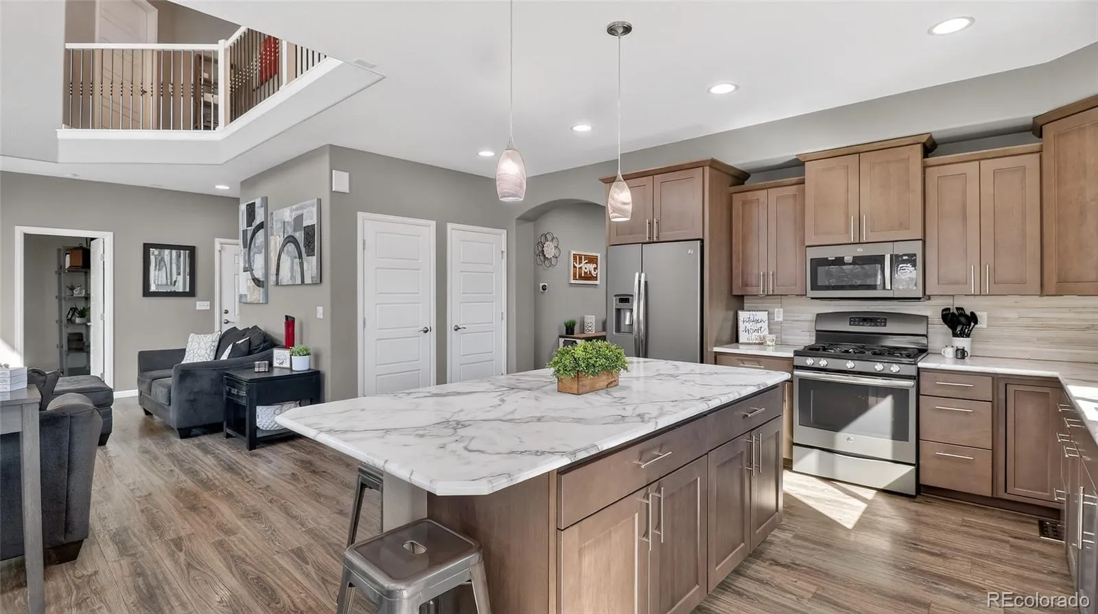 Set on a lovely corner lot overlooking the park, this light-filled home offers an open floor plan, soaring ceilings, and an inviting sense of space throughout. Expansive windows bring in an abundance of natural light, enhancing the home’s bright and airy feel. The spacious kitchen is designed for both everyday living and entertaining, featuring ample cabinet space, a large island, stainless steel appliances, a generous pantry, and a dedicated dining area just off the kitchen. The kitchen opens to the impressive two-story great room, where soaring ceilings and a beautiful fireplace with a custom mantel create a warm and striking focal point. A versatile front room offers flexibility for a second family room, sitting area, or additional office, while the main-floor office provides a private and practical workspace. Upstairs, the large primary suite offers a relaxing retreat with an oversized shower, two separate sink areas and large walk-in closet. Three additional bedrooms provide plenty of room, including one with its own ensuite bath. The upstairs laundry room adds everyday convenience, and the new washer and dryer are included. The unfinished basement offers abundant storage or the opportunity to create additional living space to suit your needs. The lovely backyard offers plenty of space to enjoy the outdoors, with a beautiful pergola sitting area, fire pit, and room for gardening, making it a wonderful setting for entertaining or relaxing at home. A large three-car garage offers plenty of room for vehicles, toys, and extra storage, while RV parking along the side yard adds even more flexibility. Offering style, comfort, and a wonderful location overlooking the park, this exceptional home is ready to welcome you.