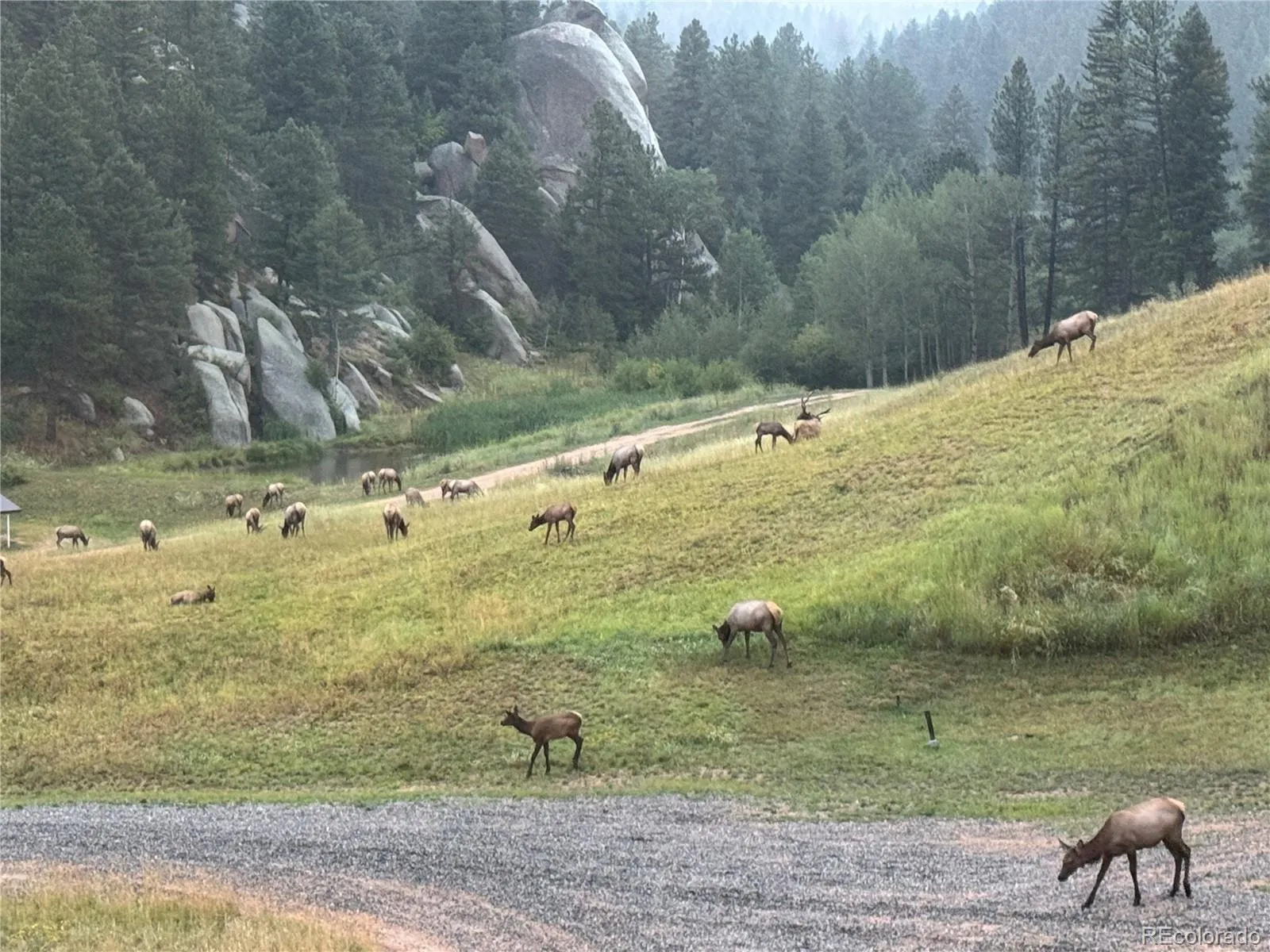Welcome to Bear Creek Ranch located at 60 N. County Highway 67 in beautiful Sedalia, just 30 minutes from Castle Rock with close proximity to Rampart Range and the South Platte River. Enjoy the privacy being adjacent to Pike National Forest and having Bear Creek run through the property which includes two ponds. This expansive 4,162 sq. ft. rustic mountain home was built from local stone and timber nestled within 44 acres, offering endless possibilities for outdoor enjoyment and serene living. You’ll find a wrap-around deck offering tranquil views overlooking rock formations, trees, meadows, and ponds. Plenty of wildlife like to visit which include elk, deer, turkeys, moose and foxes. Whether you’re sipping your morning coffee on the porch or enjoying a peaceful evening on the balcony, the stunning scenery is sure to captivate you. For the equestrian lover the property includes pastureland, large 4-stall refurbished barn painted with new roof, electrical, water, tack room, large work area, and a loft for 200 bales of hay and/or storage. The home interior includes the following improvements, new windows, sliding doors, new roof, furnace, and wraparound deck. The main level consists of a living room, den with fireplace, office, dining, kitchen with granite countertops, powder bathroom, and a laundry room. The upper level features a primary bedroom with an en-suite bathroom, two secondary bedrooms, and a full bathroom. The basement has its own entrance and could be rented as a separate unit with a living room, bedroom, bathroom, and kitchen. The home is equipped with a Spring fed cistern well, 20KW generator, tankless water heater, 1000-gallon propane tank, and Starlink WiFi internet cell phone connected.