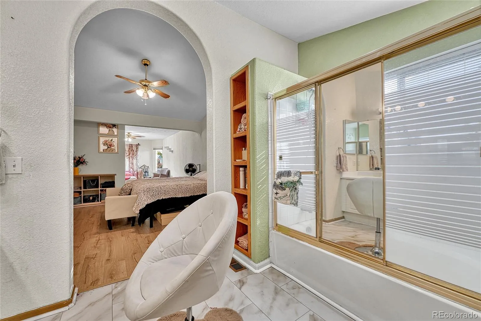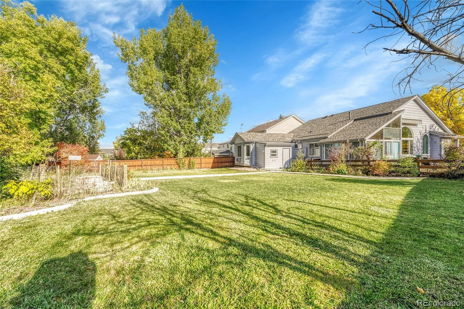 Sun-filled northwest corner-lot ranch offering true main-level living, flexible bonus spaces, and one of the largest lots in the neighborhood. Positioned on a northwest-facing corner lot, the home enjoys excellent afternoon and evening sun exposure — enhancing natural light, outdoor enjoyment, and winter snow melt. The 10,000+ sq ft oversized lot provides privacy and usable outdoor space that are increasingly rare in newer construction. Major updates add peace of mind, including a newer roof (2023), freshly painted exterior (2025), and updated radon mitigation system (2022). The thoughtfully designed main level features clearly defined yet connected living areas, providing separation where desired without sacrificing flow. Vaulted ceilings and abundant natural light create an open, airy feel throughout the primary living spaces. The primary suite includes an oversized sitting area with adjacent den — ideal for a private office, retreat, or flexible bonus space. The dining area captures evening light through arched windows and flows directly to the deck for relaxed indoor-outdoor living. A heated and cooled sunroom (not included in square footage) adds valuable year-round living space overlooking the backyard. The finished basement provides meaningful separation with a private bedroom and generous flex space well-suited for work-from-home needs, office use, guests, fitness, or recreation. A dedicated bath area is roughed in for a future shower, offering a clear path to additional functionality. Located within a short walk of the community recreation center featuring a gym, pool, and amenities, the home also offers walking access to middle and high schools.