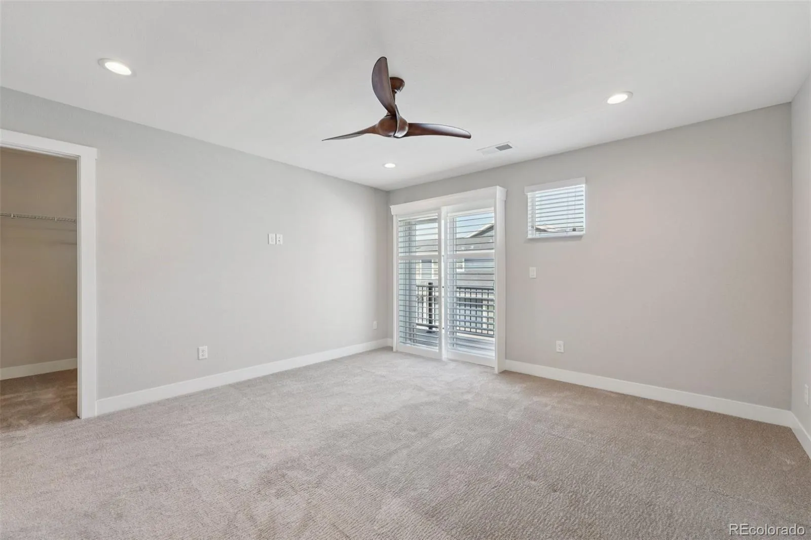 Step inside this modern townhome and immediately feel the pull of the Rocky Mountains right from your front door. Designed with unique touches not found elsewhere in the community, this home boasts an open, light-filled layout that feels both spacious and inviting. The chef’s kitchen is a showstopper with crisp white cabinets, a contrasting extended island, granite countertops, soft gray subway tile, matte-black designer lighting, and a stainless-steel farm-style sink and appliances. A custom double-door pantry keeps all your essentials organized and within reach. Warm hardwood floors flow across the main level while crown molding adds an extra touch of elegance. Thoughtful interior lighting on every floor keeps the space bright, and the modern electric fireplace makes cozy evenings effortless. Upstairs, choose between two incredible suites, each featuring large walk-in closets and spa-inspired bathrooms with upgraded tile and double vanities. Step out onto the upper-level balcony to soak in breathtaking mountain views or breeze through laundry in the conveniently located upstairs laundry room with built-in shelving. The finished basement with high ceilings and multiple windows provides a versatile space perfect as a third bedroom with an ensuite or a large recreation area. Enjoy crisp, clean water every day thanks to the advanced water filtration and softening system. With abundant storage and a two-car garage, there’s room for all your gear. Beyond your doorstep, the neighborhood offers excellent schools and direct access to the 23-acre Dry Creek Park, complete with trails, disc golf, picnic spots, playgrounds, and even a sledding hill. You’re also just minutes from shopping, dining, cinema, Whole Foods, and more, making this home the perfect blend of comfort, style, and convenience.