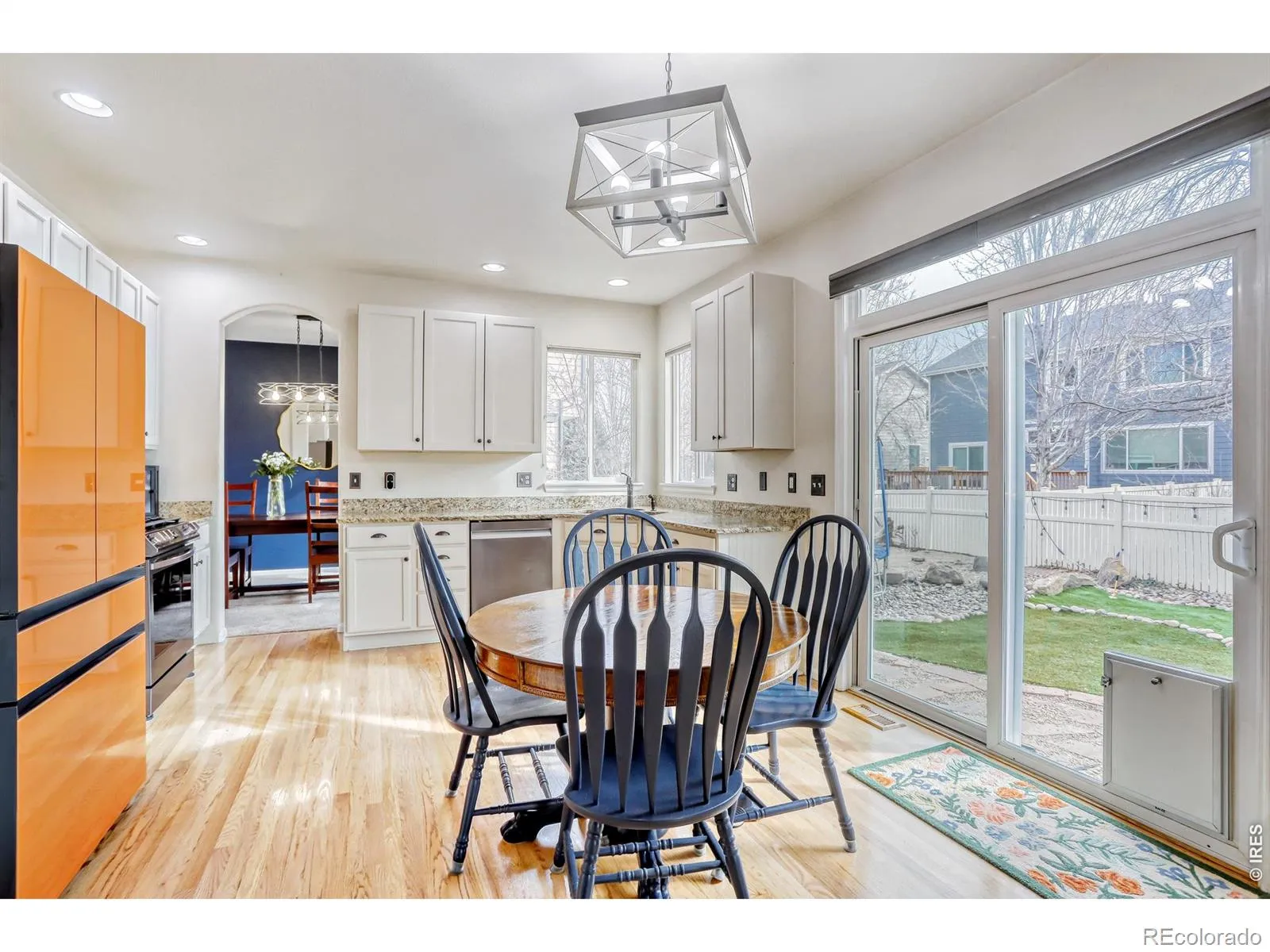 Life in Firestone just feels easier-and this home in the St. Vrain Ranch neighborhood puts you right in the middle of it. This spacious two-story home offers 4 bedrooms, 4 bathrooms, and over 3,000 square feet of room to spread out. The layout is comfortable and practical, with plenty of space for everyday living, hosting friends, or just relaxing at home after a long day. The vaulted entry welcomes you in and the main floor has newly refinished hardwood flooring. French doors near entrance lead to a flex room that can be used as an office, guest room or add’l rec rm. The kitchen has been updated with Samsung stainless appliances (2022) and granite counters. A fun orange refrigerator with an abundance of space is the center piece but the panels can also be changed out to white for a more subtle vibe. Living space off of kitchen is equipped with gas fireplace. Enter the primary bedroom through French doors and enjoy the large walk in closet and inviting soaking tub. One of the standout features is the finished basement with its own kitchen-perfect for guests, multi-generational living, game nights, or creating a separate hangout space. With an add’l rec room, large bedroom and 3/4 bath it gives the home a lot of flexibility depending on how you want to use it. A radon system was insalled in 2024. Step outside to the incredible yard w/turf that still has an irrigation system built in should you care to reimagine the space. The heated 3-car garage also means there’s room for vehicles and all the extras that come with Colorado living and if that overflows you have a separate shed in the backyard. The location is hard to beat. The neighborhood park is just around the corner, and the elementary school is close enough to make morning routines simple. St. Vrain Ranch is known for its relaxed feel, friendly streets, and easy access to everything Firestone has to offer. If you’re looking for a home with plenty of space in flexible layout this one is definitely worth a look.