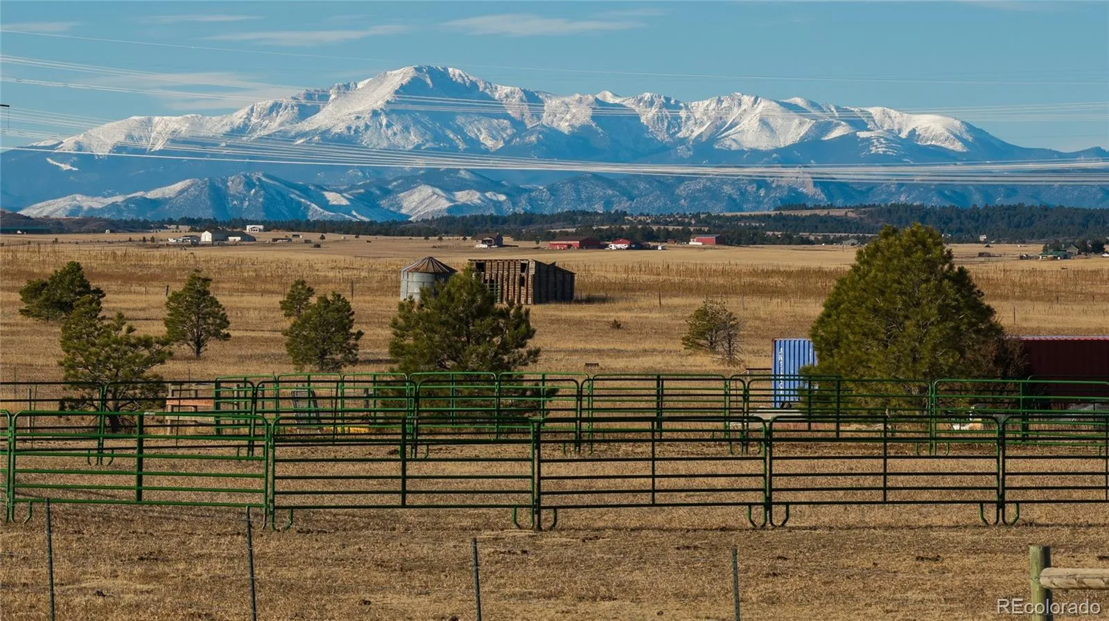 The ranch boasts 40 acres of level terrain with scattered ponderosa pine and native grass. The views to the west cover peak to peak of the Colorado front range, including towering views of Pikes Peak!