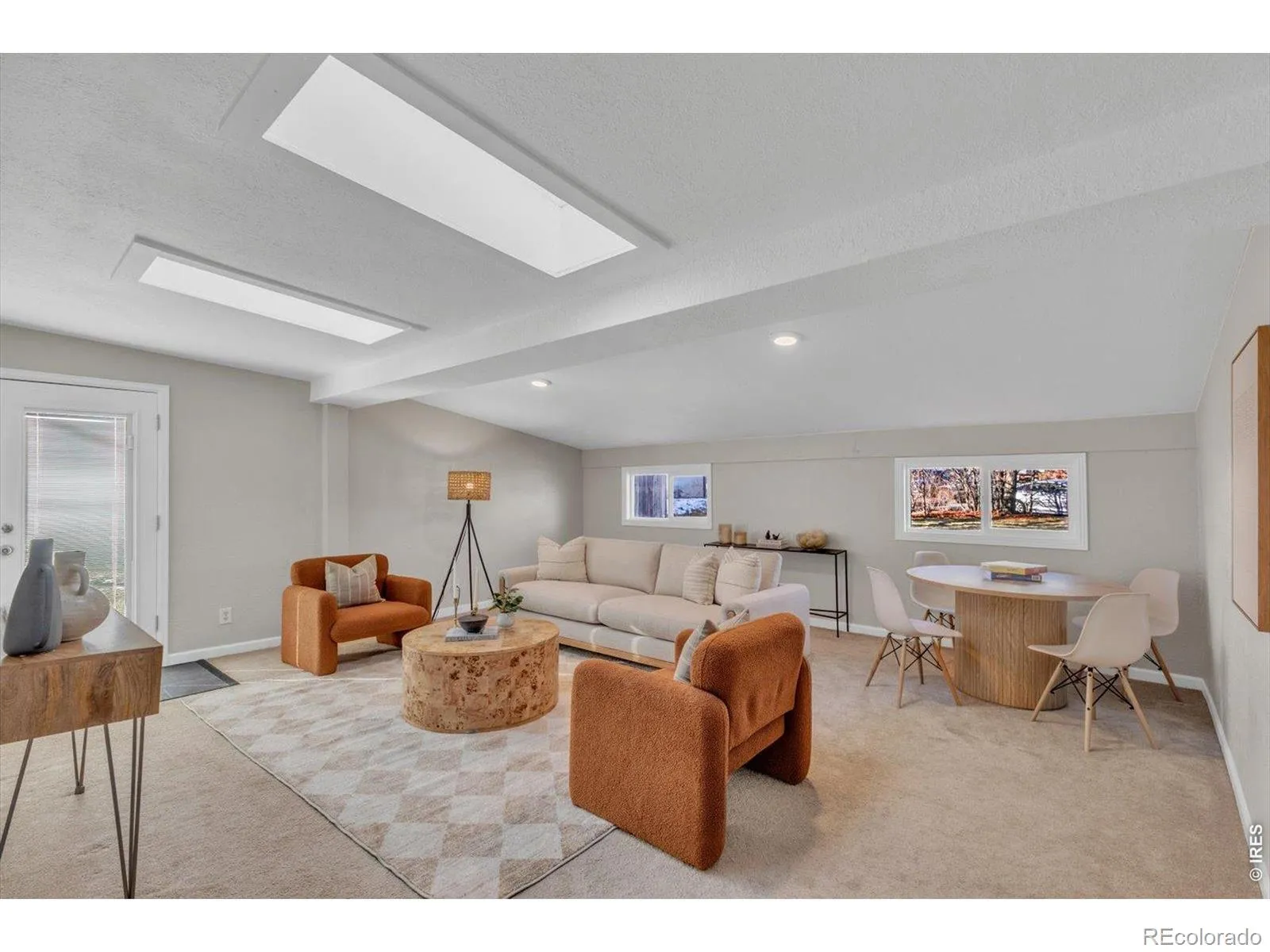 Fantastic location in the Baseline – Aurora 7 neighborhood across from a neighborhood park where Skunk Creek meanders through, and within easy walking distance to the University of Colorado. This beautifully remodeled and expanded ranch sits on a huge corner lot with a fenced backyard, a generous side yard with plenty of space for a large garden, and seasonal Front Range views, including peekaboo views of 13,000-ft Mt. Audubon on the Continental Divide. The well cared for 3 bedroom, 1 bath home offers 1,440 square feet of comfortable living space with sparkling hardwood floors and a freshly painted interior. A spacious family room addition features two new skylights and a cozy wood-burning fireplace, creating a bright and inviting gathering space. The remodeled kitchen is designed for both style and function with knotty alder cabinetry, quartz countertops, an 8″ x 4″ brick-set subway tile backsplash, and favored 2′ x 1′ tile flooring. High-end appliances include a Dacor double oven, a gas cooktop, stainless steel appliances, and a large center island with breakfast bar seating-ideal for cooking, entertaining, and everyday living. Additional highlights include a newer furnace and central air conditioning, a stacking washer and dryer, an oversized one car garage with storage and workshop space, and a prime park-side setting, offering an exceptional combination of location, comfort, and thoughtful updates.