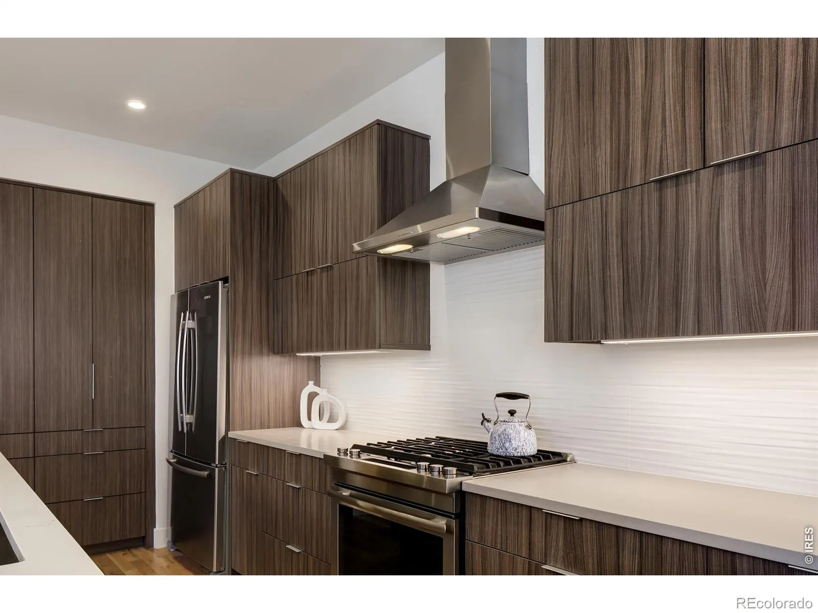 OPEN SUNDAY 3/15 1 – 3. Perched above permanent open space, this exceptional luxury condo offers a rare blend of privacy, scenery, and sophisticated design. From the comfort of home, enjoy sweeping views of the changing skies-watch the sunrise illuminate the landscape, the sunset paint the horizon, and the weather roll gracefully across the open expanse. Inside, soaring 13′ vaulted ceilings and an airy open-concept floor plan create a dramatic yet welcoming living environment designed for both everyday comfort and elegant entertaining. Walls of windows frame the natural surroundings, bringing the outdoors in while maintaining a serene sense of retreat. Every detail of this residence has been thoughtfully curated. Custom built-in shelving and drawers enhance the closets, living room, and office area, while custom designed pantry and primary water closet storage maximize both beauty and functionality. Each space has been purposefully crafted to achieve the highest and best use. Timeless plantation shutters provide refined privacy and architectural charm, complementing the rich hardwood flooring that flows throughout the home. A tankless water heater adds modern efficiency, while Kiko and Lutron lighting elegantly highlight artwork and living spaces with layered illumination. Tasteful designer touches continue with playful yet sophisticated wallpaper accents in the bathrooms, adding a note of personality and style.vStep outside to nearly 200 SF of private balcony/deck space, the perfect setting to savor a quiet morning coffee, unwind with an evening cocktail, or simply take in the beauty of the surrounding open space. With direct access to nearby hiking trails and a setting that feels both tranquil and connected, this residence embodies secure and upscale modern living at its finest.