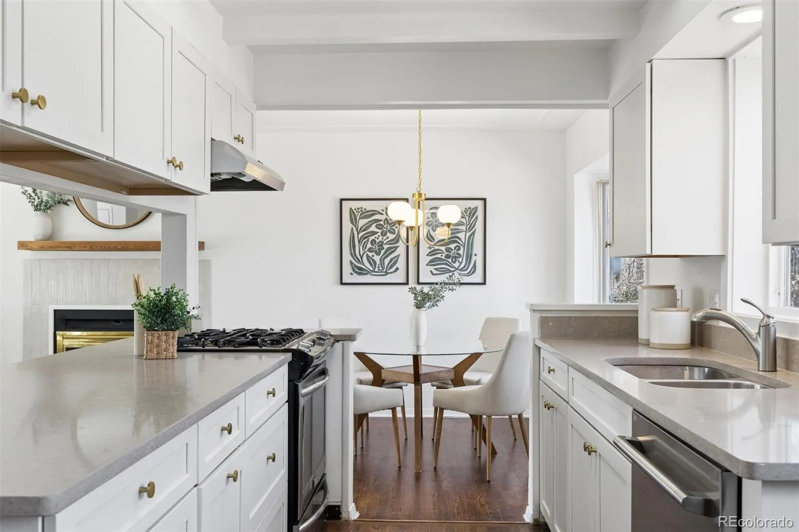 This charming ranch-style home located in the coveted Cherry Creek School District and top-rated Cherry Creek High School boundaries offers the perfect blend of updated elegance and timeless comfort, all on a large, private lot with mature landscaping. Step inside to nearly 2,300 sq ft of thoughtfully refreshed living space, featuring fresh paint throughout, redone wood floors, modern lighting, newer roof and hot water heater, and more. The bright, casually elegant kitchen flows seamlessly into the dining area and beyond, with crisp white cabinetry, gold hardware, a sleek new refrigerator, and an open sightline that makes entertaining feel effortless. Large bay windows let in tons of natural light, while the first of two cozy fireplaces anchors the large main living room. Three main floor bedrooms, including the Primary with a private half bath plus a convenient full bath complete the main floor. Downstairs, a massive fourth bedroom provides plenty of space for a guest suite, or home office or gym area. The second fireplace creates a charming media/game room in the large living area; perfect for fun game or movie nights. A third bathroom, along with a large laundry and utility area complete the basement. Outside, the expansive backyard oasis with mature trees provides plenty of room for play, gardening, or simply unwinding around the fire pit under the stars. Ideally located near Yale & I-25 light rail, with Cherry Creek or DTC just minutes away, yet situated in a quiet neighborhood, this updated home is an ideal combination of style, size and location. Don’t miss out!