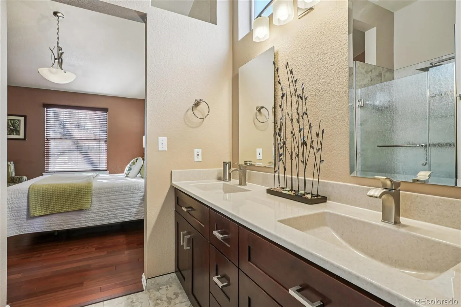 Welcome to 2050 Julian Way — a lovingly maintained cottage-style ranch home where pride of ownership shines through every detail, nestled just steps from Sloan’s Lake. Tucked into a neighborhood of classic, traditional architecture, this charming home feels right at home among its surroundings while offering the ease and simplicity of single-level living. A thoughtfully landscaped front yard sets the tone for what’s inside. Step into an entry hallway with soaring ceilings, clerestory windows, elegant arched details, and gleaming Brazilian cherry wood floors that flow beautifully throughout the main level. The open-concept layout connects the living room — anchored by a gas fireplace and bathed in natural light — to the formal dining area and a stylish kitchen featuring quartz countertops, a gas range, stainless steel appliances, and a peninsula with bar seating. A large custom walk-in pantry with floor-to-ceiling built-in shelving is a chef’s dream. A sliding glass door leads to a private deck and charming brick patio below. Two well-appointed main-level bedrooms and an attached, finished garage round out the main level. Downstairs, the fully finished basement offers a bright family room, two additional rooms ideal for guests or a home office, and a well-organized laundry and storage area. The professionally managed HOA makes for truly low-maintenance living — covering fence maintenance, alley and sidewalk upkeep, snow removal, and most of the front landscaping and common areas, so you can spend less time on chores and more time enjoying the neighborhood. Sloan’s Lake is practically in your backyard — walk the scenic 3-mile loop, dine at neighborhood favorites like The Patio, Stoney’s, and Cholon, catch a show at the Alamo Drafthouse, cheer on the Broncos just down the street at Mile High, or explore Edgewater Public Market, the Highlands, LoHi, and LoDo. Homes this well cared for and this close to Sloan’s Lake don’t come around often. When they do, they don’t last.