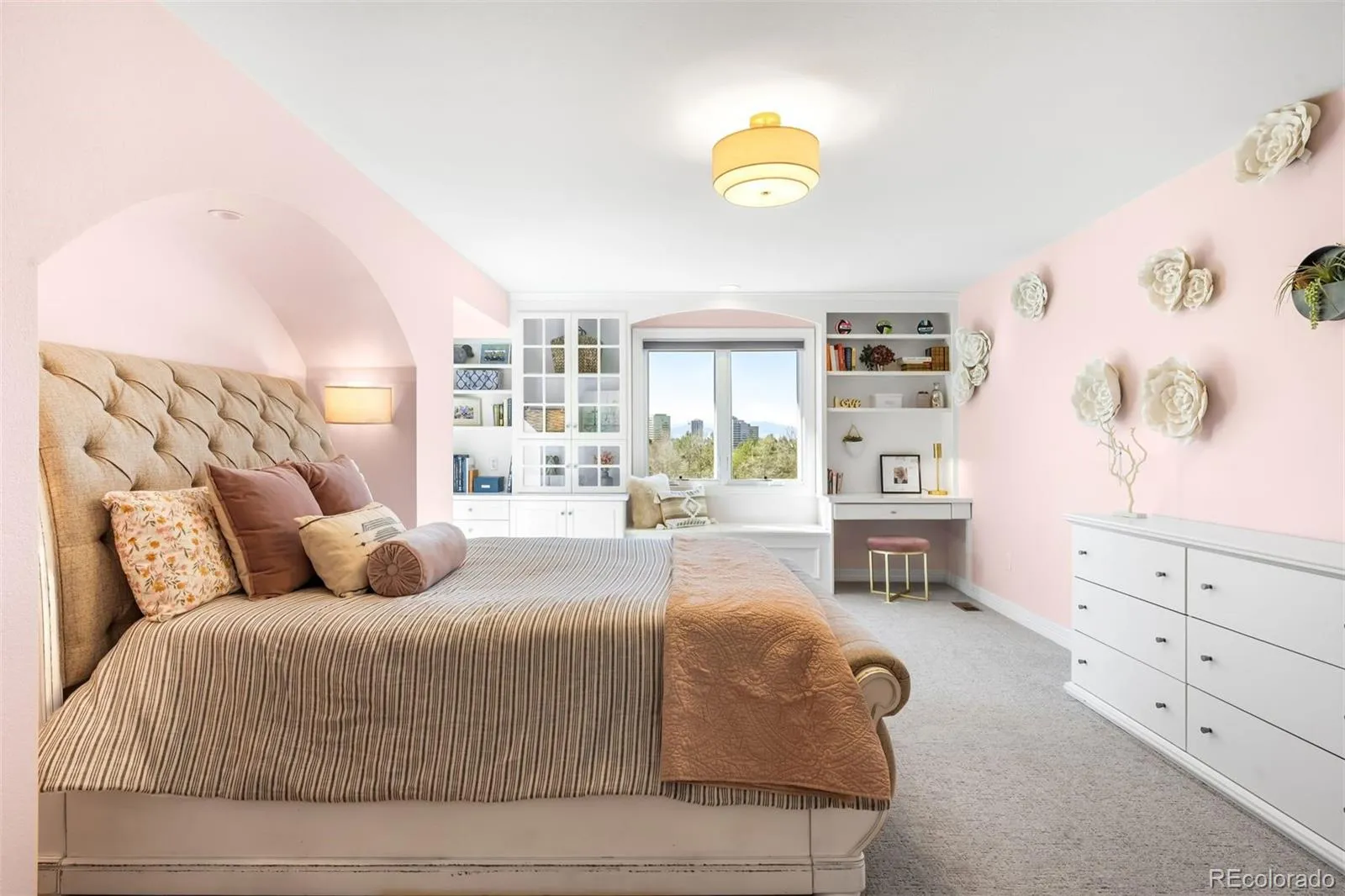 Set on one of the most coveted lots on the east side of I-25, this nearly 11,000 square foot, 6-bedroom, 9-bathroom Greenwood Village generational estate boasts stunning mountain and city views creating an extraordinary backdrop for elevated living and exceptional entertaining. Backing directly to Hoffman Park, the property enjoys the rare luxury of protected parkland, offering privacy and openness without the maintenance of additional acreage. A dramatic entry with dual staircases introduces the home’s scale and architectural presence. The main level has been thoughtfully opened to create seamless flow between the great room, entertaining areas and recently remodeled gourmet kitchen. The floor-to-ceiling windows frame the mountain views, providing a natural backdrop for both intimate and large-scale gatherings. Two main-floor offices with fireplaces provide refined work-from-home flexibility, complemented by a private guest suite. Upstairs, the 1,500SF primary retreat features balcony access, panoramic views, a sitting area with fireplace, a grand walk-in closet with space to create your own private dressing retreat, a panic/safe room, and a recently remodeled bath with heated floors and steam shower. Three additional bedrooms complete the second level, each with a walk-in closet and en-suite bath. The lower level is purpose-built for hosting, featuring a 500-bottle wine cellar, entertaining bar/kitchenette, expansive media and game area with fireplace, gym, powder bath, guest suite with private bath, abundant storage, and an indoor golf driving range. Outdoors, an extensive patio with hot tub overlooks the park and mountains, an exceptional setting for sunset evenings and year-round entertaining. A 6-car garage and extended driveway provide ample space for guests and collectors. Ideally located with convenient access to the Denver Tech Center, Cherry Creek State Park and top-ranked Cherry Creek Schools: Cherry Creek High, Campus Middle, and Belleview Elementary.