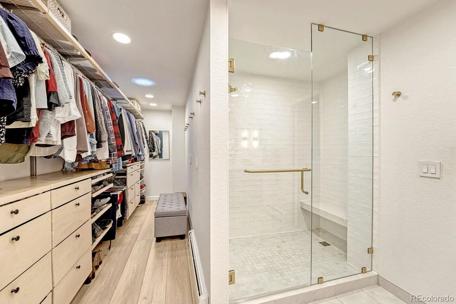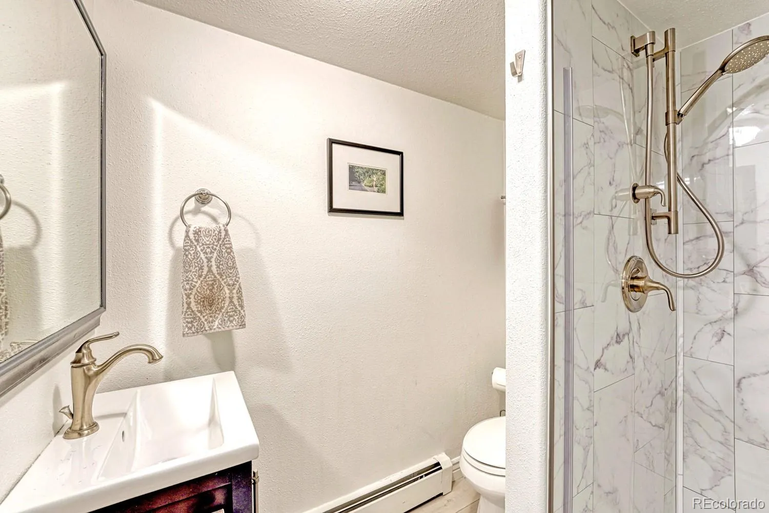Inside, you’ll find new flooring throughout and a thoughtfully redesigned layout that balances comfort and functionality. The finished basement expands your living space, ideal for guests, recreation, or a private retreat. The kitchen features a new gas oven, matching appliances, that provides both style and additional prep space — ideal for entertaining or everyday living. The primary suite offers a spa-like experience, highlighted by heated floors in the master bath — a luxurious touch that adds comfort during Colorado’s cooler months.