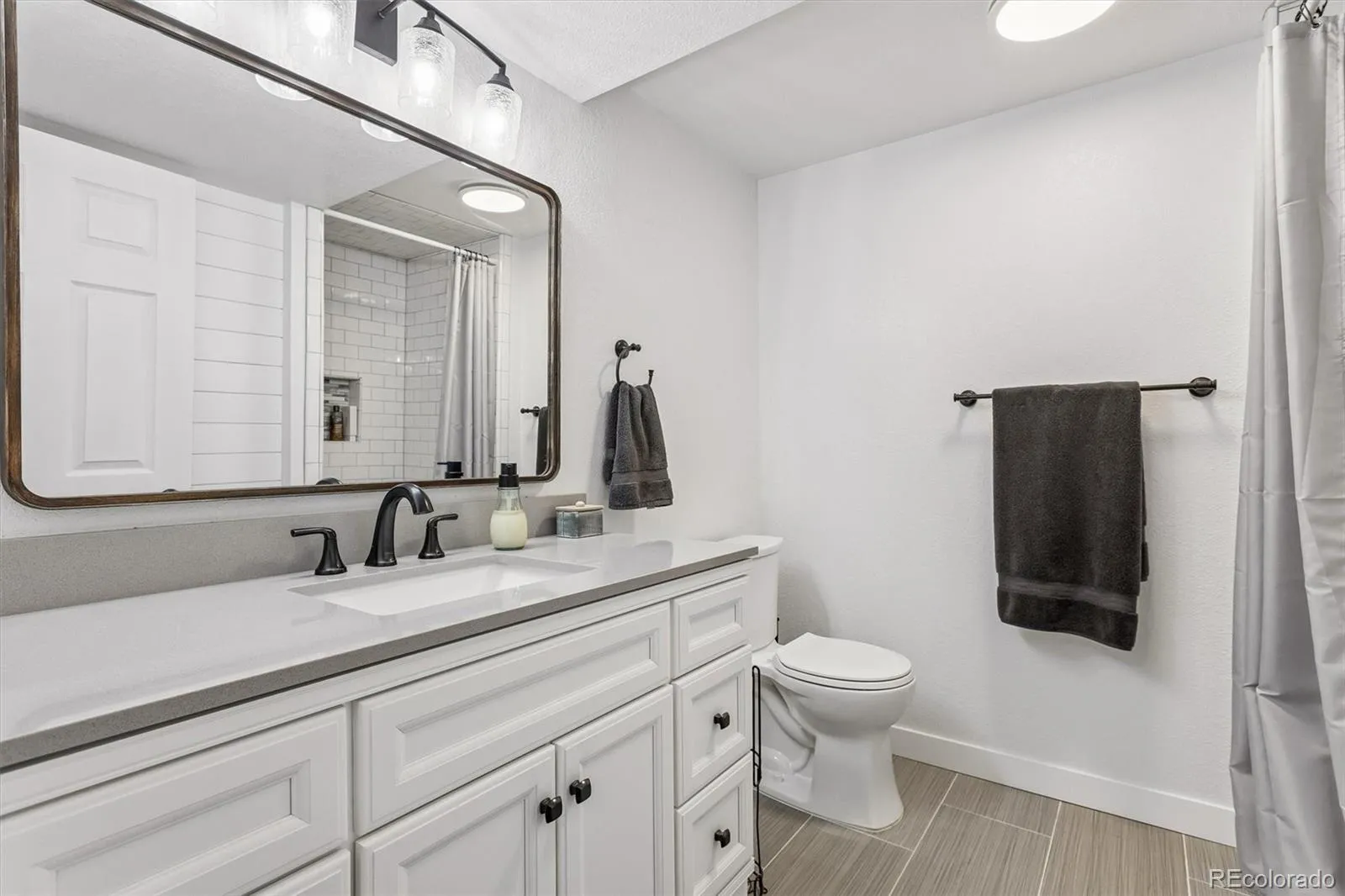 Both bathrooms have been tastefully renovated with modern vanities, updated tilework, and clean, contemporary finishes that elevate the home’s overall design. Downstairs, the finished basement offers exceptional versatility with a spacious second living area ideal for a game room, media lounge, home gym, or office. A stylish dry bar and expansive family room create the perfect setting for entertaining, relaxing, or hosting guests.