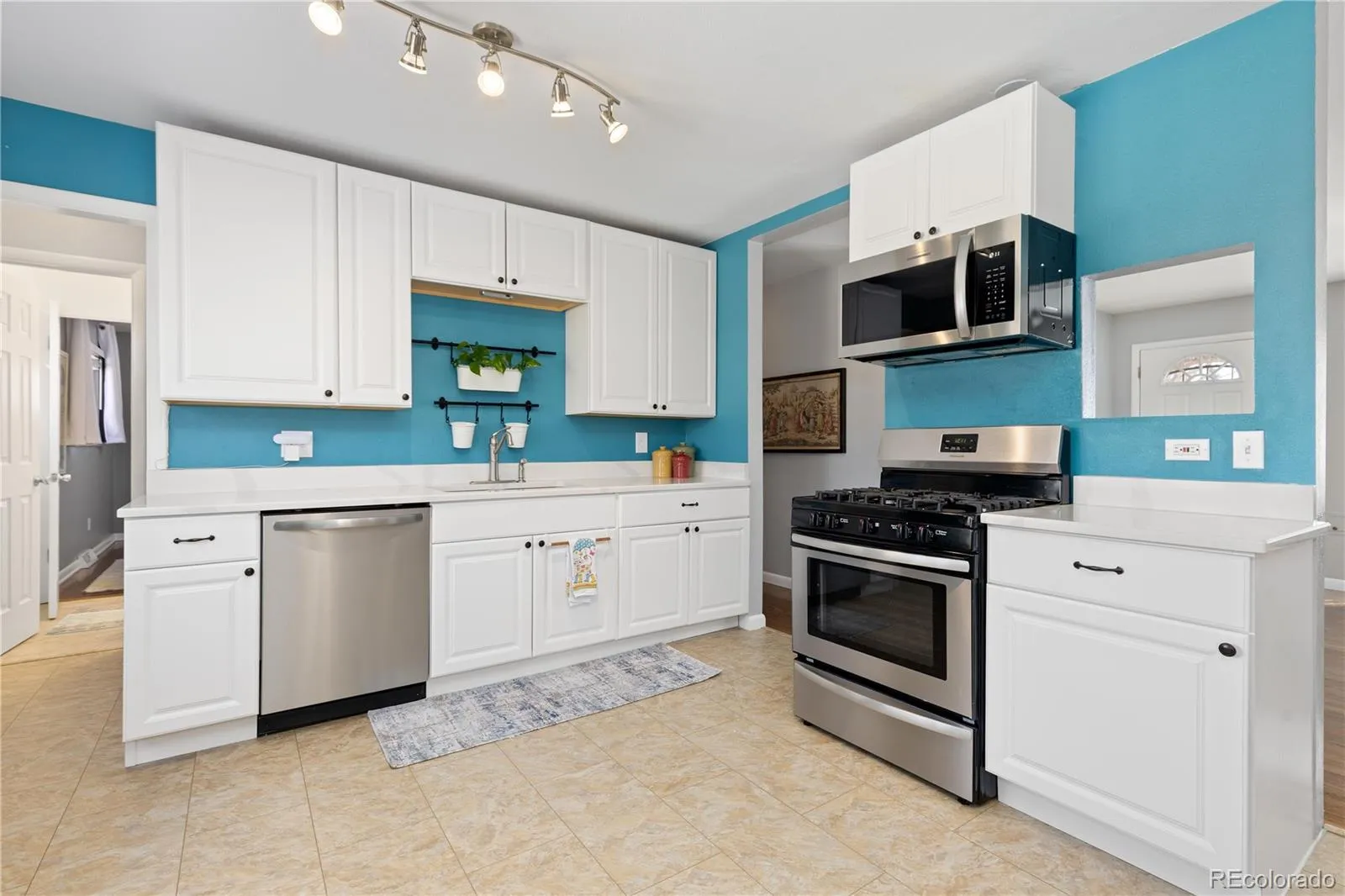 Enjoy a tranquil setting with no HOA in the highly desirable Centennial Estates neighborhood of Littleton. Your “forever home” is located on a quiet, sparsely traveled section of Belleview, which remains a peaceful, one-lane-each-direction neighborhood street here. Situated on a sprawling corner lot shaded by massive mature trees, this ranch-style residence offers the rare convenience of true single-floor living. You are welcomed into a sun-drenched living room that leads into a large, open kitchen—a unique find for this neighborhood, where smaller galley-style kitchens are the norm. The updated kitchen boasts quartz countertops, stainless steel appliances, and a comfortable eat-in area. Down the hall, you’ll find two secondary bedrooms and a full bath, along with the primary suite that features convenient en-suite access to the main-floor powder bath. The exceptionally functional and well-executed finished basement is centered around a massive family room with a cozy fireplace. This level also includes a fourth non-conforming bedroom, a 3/4 bath, and a huge laundry room. For those with extra gear, a large unfinished storage area provides all the room you need. Outside, the massive, privately fenced backyard is a true retreat, featuring an adjoining sunny deck and patio, a firepit, and a playground. Complete with professional landscaping, a dedicated dog run, and lush trees, this outdoor space is built for both relaxation and play. This is truly a home, not just a house, offering the perfect blend of updated interiors and expansive outdoor living in a prime Littleton location.