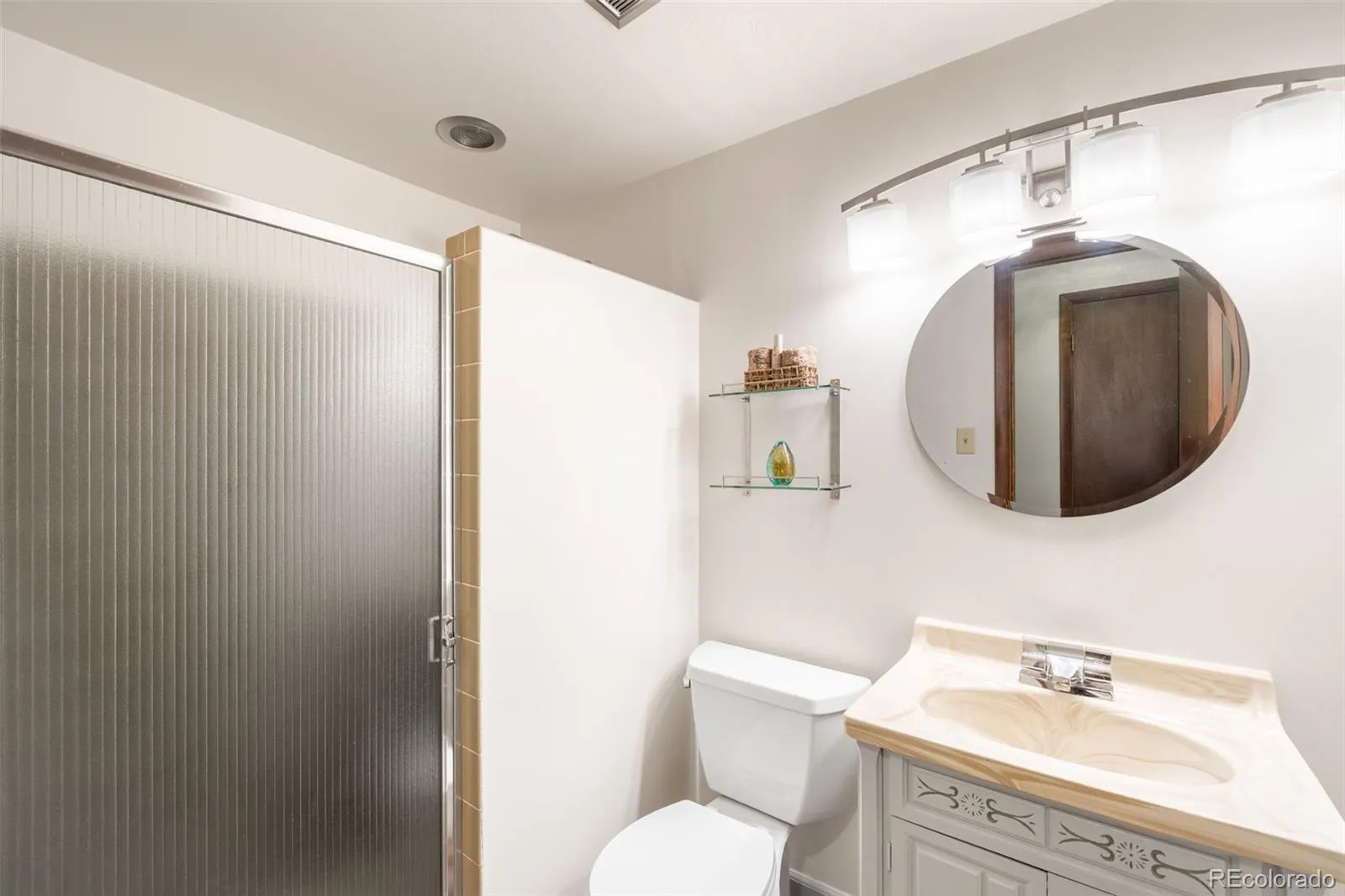 The lower level opens to a covered patio and large fenced backyard with a hot tub—ideal for relaxing evenings and enjoying Colorado’s sunshine. A cozy brick fireplace, fourth bedroom, and additional bathroom with shower create a comfortable guest or retreat space.
