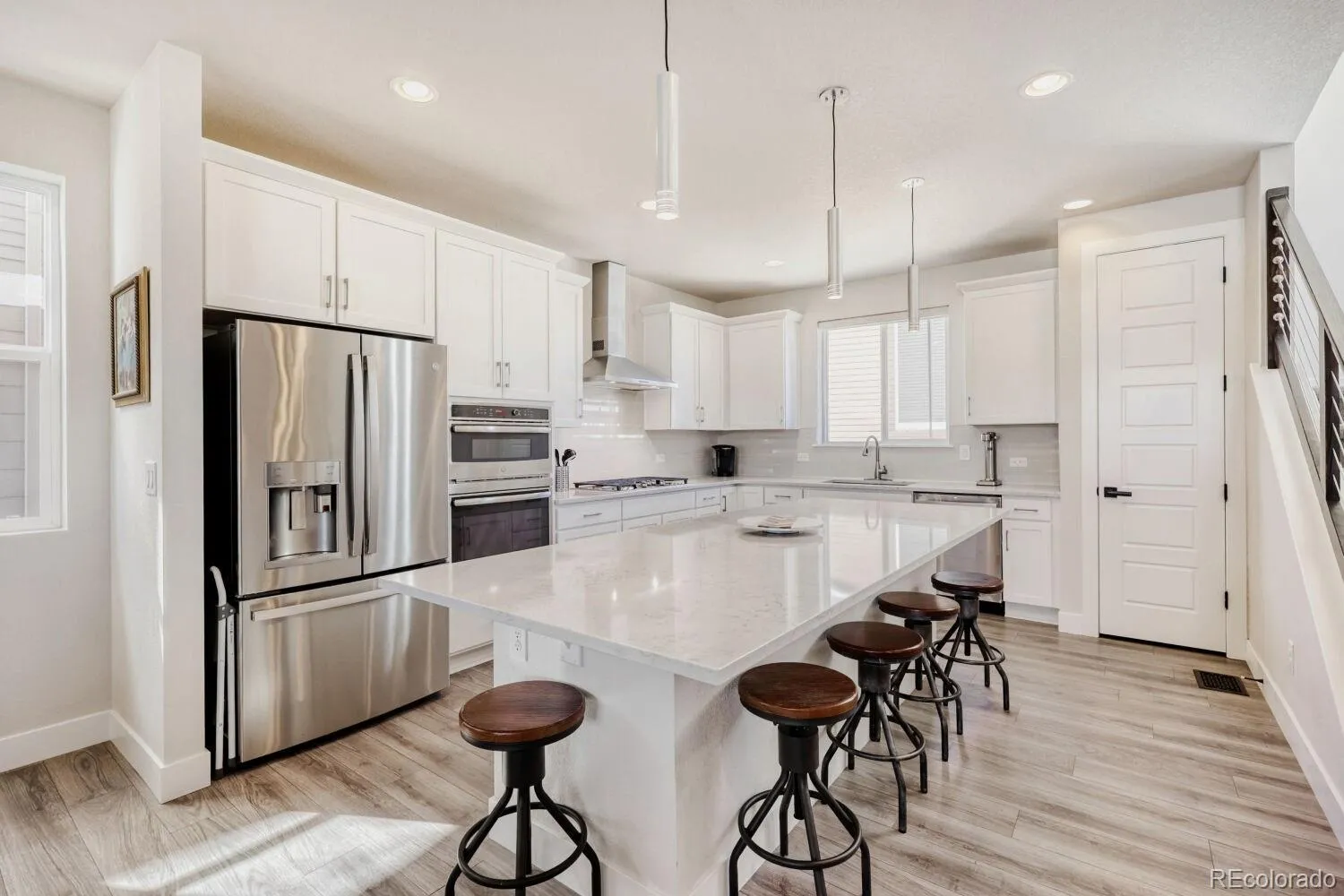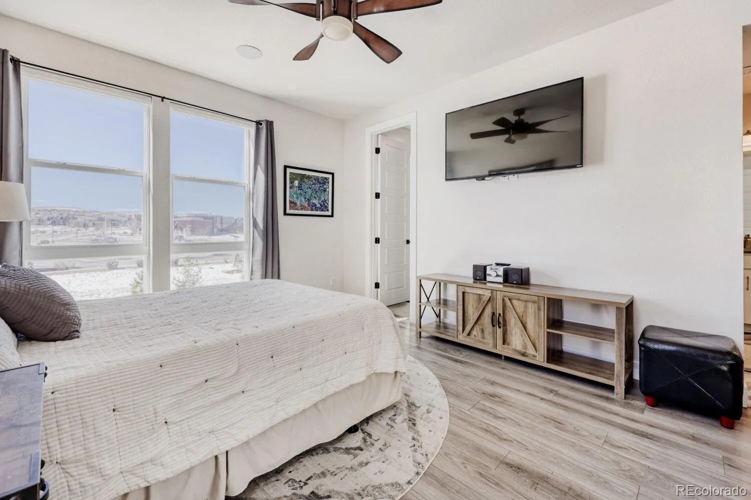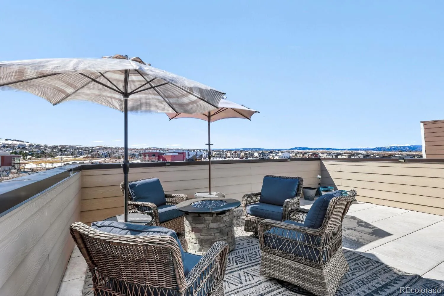 Seller is offering a $10,000 concession toward buyer’s closing costs or interest rate buydown! Intelligent and Elegant Colorado Living at its Finest, in The Meadows of Castle Rock! Fantastic opportunity to own this Gorgeous 3 Story home ideally located on a Corner Site & on a Quiet Interior Street across from a Park. Previous Model home with Upgrades throughout. Features a Huge 554 SqFt Rooftop Terrace with Mountain Views & overlooks a Park; perfect for Entertaining & Relaxing in those incredible Mountain Sunsets. Offering 3 Bedrooms (3rd Bed is non-conforming) 3 Baths & attached Oversized 2 Car Garage. Curb appeal & very Low Exterior Maintenance-Lock and Leave. Impressive Features begin with a Covered Entry to a Foyer, a Sunlit Office/Bonus Room & Storage area. Step upstairs to the Stunning Main Level. Enjoy Bright Open Concept Living and Spacious Living Room opens to a Balcony & adjacent Storage Room. Informal Dining area is ideal for Entertaining. Gourmet Kitchen is a Chef’s delight. Quartz countertops, Island with Breakfast Bar Seating, SS Appliances, includes a 5-Burner Gas Cooktop & Range Hood. Plenty of storage in White Cabinetry with Soft-close Drawers & Pantry. Upper 3rd Level Spacious Primary Suite complete with Floor to Ceiling Windows framing relaxing Park views, Large Walk-in Custom California Closet. Luxurious 4-Piece Primary Bath boasts a Large Shower, Double Shower Heads & Built-in Bench, Double Sinks, Herringbone Tile. There’s a 2nd Bedroom w Walk-in Closet & a Full Bath. Main Level Powder Room has Wood Paneled Accent Walls. A/C, Ceiling Fans, Remote controlled Blinds and Wood Laminate Flooring. Solar lights & Gas valve on Rooftop Deck. 454 SqFt Garage is Drywalled with Epoxy Floor. Great location! Southwest Facing. Steps to Park & Taft House Pool, Sand Volleyball Court & Firepit. Walk to Trails/Open Space & Dining. Minutes to Entertainment, Schools & more Restaurant choices. Close to Shopping & Retail. Quick, Easy access to I-25. See Virtual Tour