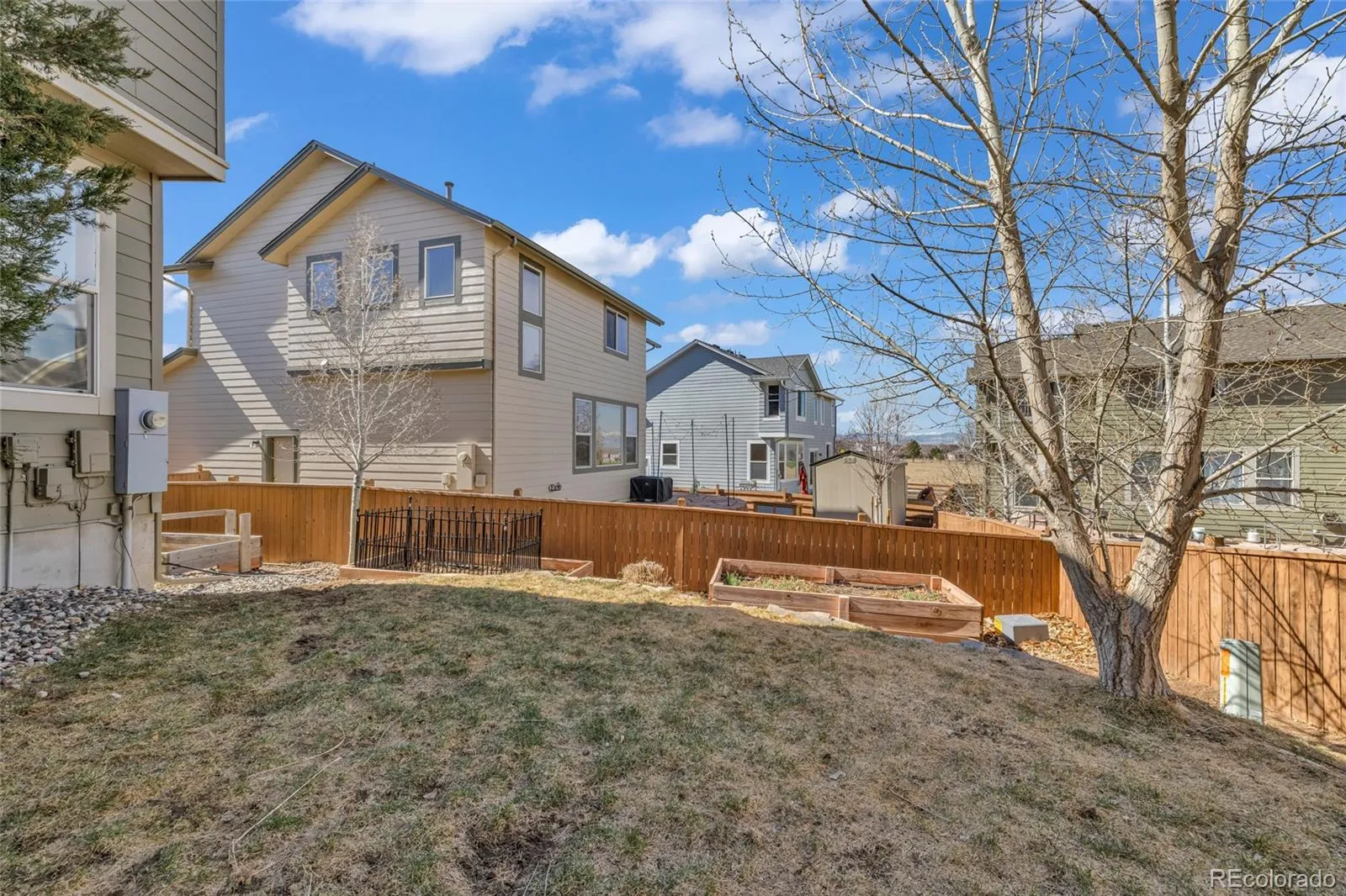 Major system updates include tankless water heater, whole-house water filtration system, A/C, furnace, and whole-house humidifier. Outdoor features include raised garden beds, perennial landscaping, and mountain views, with convenient access to parks, trails, recreation center, and Reunion Coffee House.
