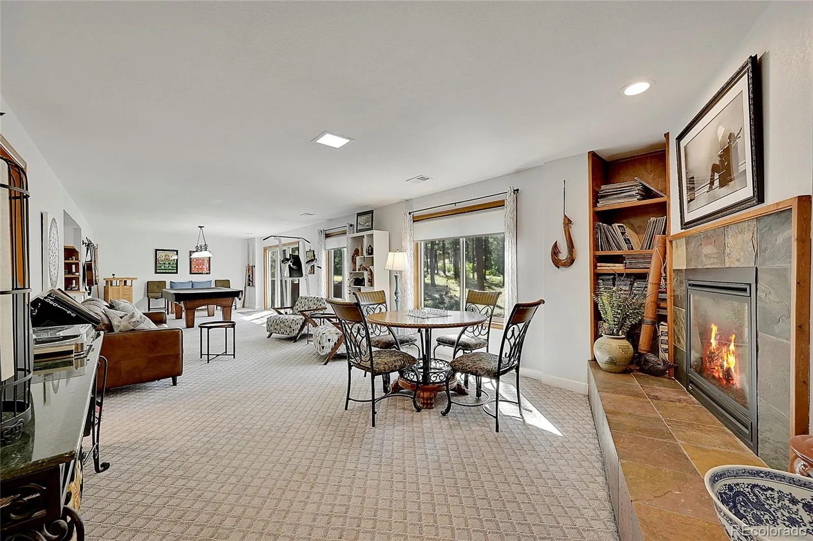 The walk-out basement creates the ultimate entertainment space with a gas fireplace, expansive recreation area, billiards space, and a dedicated media room with projection screen—perfect for movie nights or gatherings. With large windows and flexible living space, it also offers great potential for guest quarters or multigenerational living.
