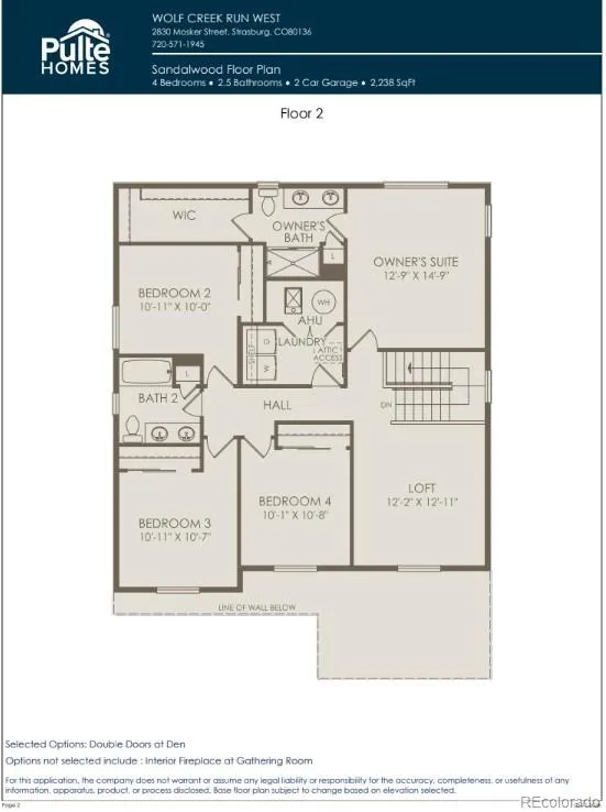 Welcome to Wolf Creek Run West, where serene rolling plains offer a peaceful retreat. The Sandalwood plan, featuring a charming front porch and a versatile main-floor den—ideal for a home office or creative space. The open-concept layout seamlessly connects the gathering room, café, and kitchen, making entertaining effortless. Upstairs, a spacious loft provides additional living space, while three secondary bedrooms share a full bath with dual sinks. The generous primary suite includes dual vanities, a walk-in shower, and a large walk-in closet. For added convenience, the laundry room is located near all bedrooms. Rear landscaping and fencing is included on this lot, making this home almost turn-key. Wolf Creek Run West features a community park with a playground, baseball diamond, and sports fields. With easy access to I-70, Denver International Airport, and the East Denver Metro area, this location combines tranquility with connectivity.