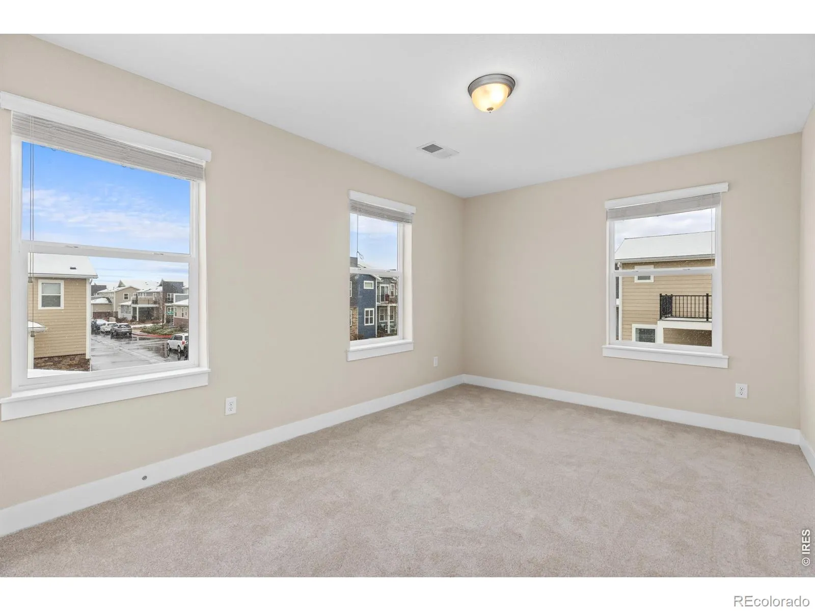 Beautifully maintained end-unit townhome on Longmont’s desirable west side near Silver Creek High School, Dry Creek trails, parks, and neighborhood dining and shopping. With 2,300 square feet and windows on three sides, the home feels open and spacious, more like a single-family layout than a typical townhome.The main level features hardwood floors, fresh interior paint, and brand-new carpet. The granite island kitchen with stainless appliances sits at the center of the home and opens naturally to the living and dining spaces. The attached two-car garage connects directly to the main living area, making everyday tasks like bringing in groceries simple and convenient. The floor plan offers flexibility with a main-level bedroom and a spacious upstairs primary suite with oversized closets and a private east-facing patio that catches beautiful morning sun. Additional bedrooms are generously sized with excellent storage. As an end unit with only one shared wall, the home enjoys extra windows, great natural light, and added privacy. Outside, a generous patio provides space to relax or entertain. New larger and more efficient HVAC system just installed 6 months ago. Central air conditioning and full-size washer and dryer included. Close to parks, trails, and local favorites for sushi, deli fare, and even a renowned artisan chocolate shop! Schedule your private showing today.