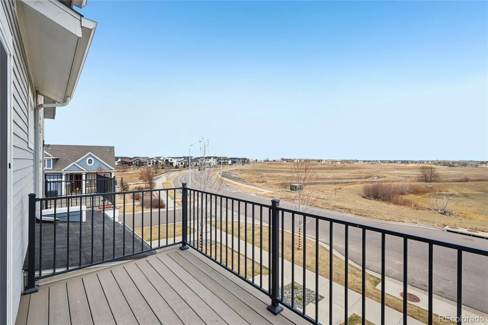 Experience luxury, low-maintenance living in this beautifully designed West Grange Villas paired home in SW Longmont. Backing to unobstructed open space with no neighbors in front, this move-in-ready home offers peaceful views and a thoughtfully designed layout perfect for modern living. A nice covered front patio provides a warm welcome home! Step inside to a grand open floor plan featuring easy-maintenance 7″ wood laminate flooring throughout the main level and the upper primary bedroom. The inviting living room is anchored by a stylish modern fireplace with a dramatic floor-to-ceiling tile surround, creating the perfect space to relax or entertain. The chef-worthy kitchen is both functional and elegant, showcasing stainless steel appliances, a gas range with overhead hood, abundant white Shaker cabinetry with crown molding, and a large walk-in pantry for excellent storage. A convenient back door off the kitchen provides direct access to the attached two-car garage. Upstairs, a spacious and versatile loft offers the perfect flex space for a home office, media room, or play area. All three bedrooms feature walk-in closets, with the primary suite thoughtfully positioned opposite the guest bedrooms for added privacy. The serene primary retreat includes a private balcony overlooking open space, along with a well-appointed en-suite bath. The secondary bedrooms share a convenient Jack-and-Jill bathroom, and the upper-level laundry room with included front-load washer and dryer makes everyday living easy. Enjoy low-maintenance living in a prime location close to highly regarded schools, miles of trails, and endless opportunities for hiking, biking, dining, shopping, and recreation. A rare opportunity to enjoy modern comfort, scenic views, and an unbeatable Longmont lifestyle.