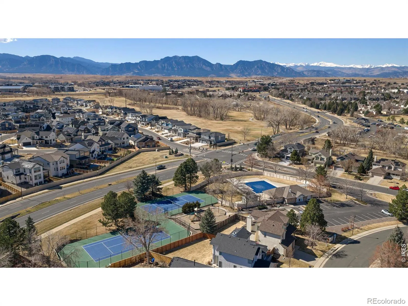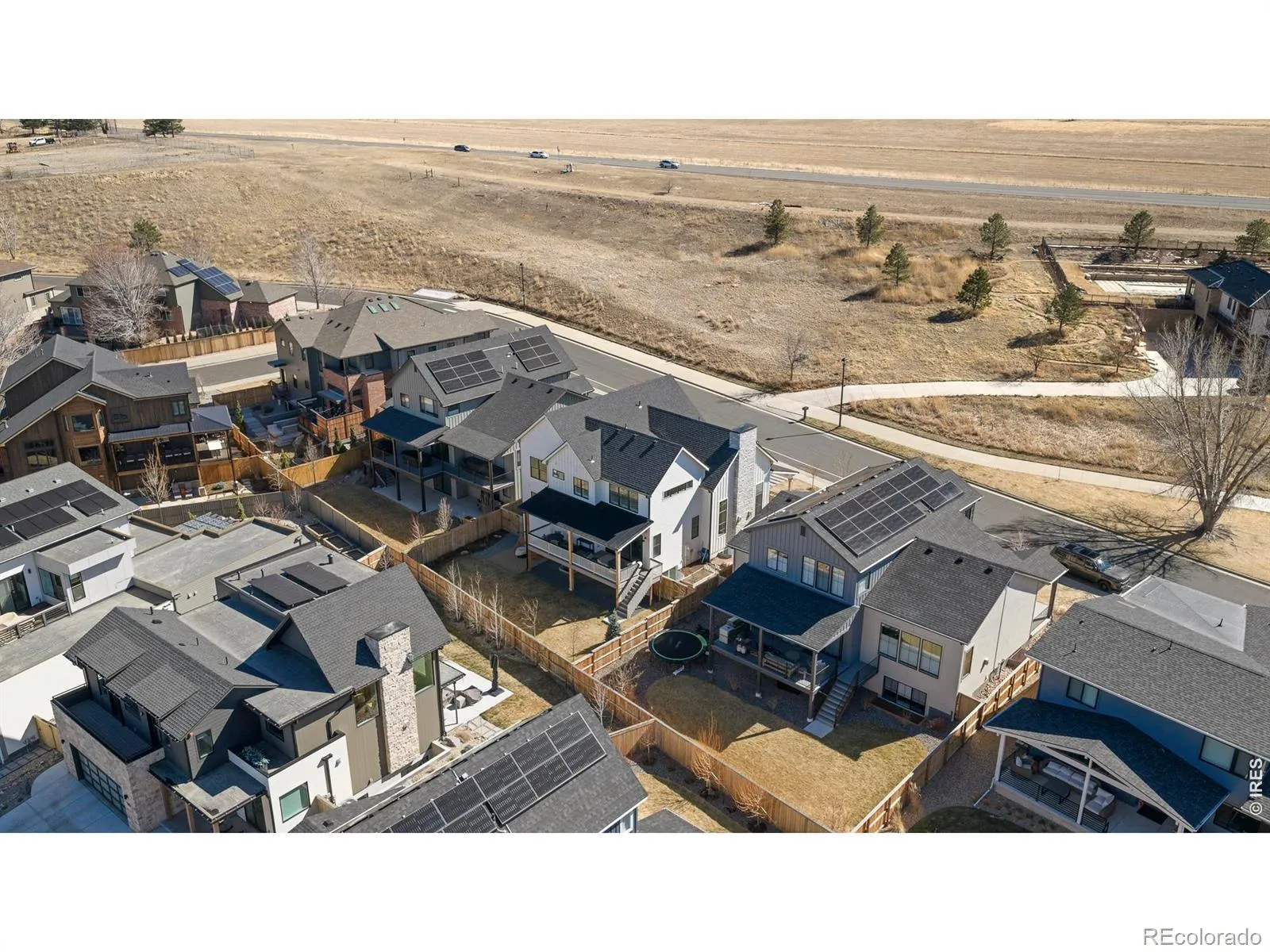 Impeccable taste, spot-on style and sunlit, elevated comfort distinguish this palatial Coal Creek Ranch home, custom built with extraordinary care to optimize light, views and seamless indoor-outdoor living. Elegant, double-front doors welcome you to a sunny porch, a perfect place for morning coffee. Situated in one of Louisville’s friendliest enclaves (you know there are good vibes when there’s a gate built into the back fence!), this home makes the most of its setting across from open space and the 14-mile Coal Creek Trail. It’s also designed for entertaining inside and out, starting with an open kitchen that features a generous quartz island, Thermador appliances, custom cabinetry, a walk-in pantry and a bar station. Sightlines extend to the spacious dining and great rooms, sunlit through picture windows beneath soaring ceilings and anchored by a fireplace, plantation shutters and electric blinds. Take your gatherings out to the covered back deck with built-in heaters, a TV and a pass-through window to the kitchen, all framed by lush landscaping and raised irrigated garden beds. Downstairs, an ultra-comfortable entertainment room includes a bar, mini fridge and dishwasher for game-day get-togethers or movie nights. A full gym, additional bedroom, stunning bath and unfinished rec space maximize the expansive lower level. Upstairs, the serene primary suite and three additional bedrooms offer peace and quiet above it all with vaulted ceilings, generous closets, views, sunlight and luxe finishes. Back on the main level, an extra bedroom with adjacent 3/4 bath adds flexible space for guests or as a home office. A spacious mudroom with built-in storage and lockers and an oversized two-car garage (with EV- and solar-ready capacity) help keep life polished and effortless in this mindfully made dream home.