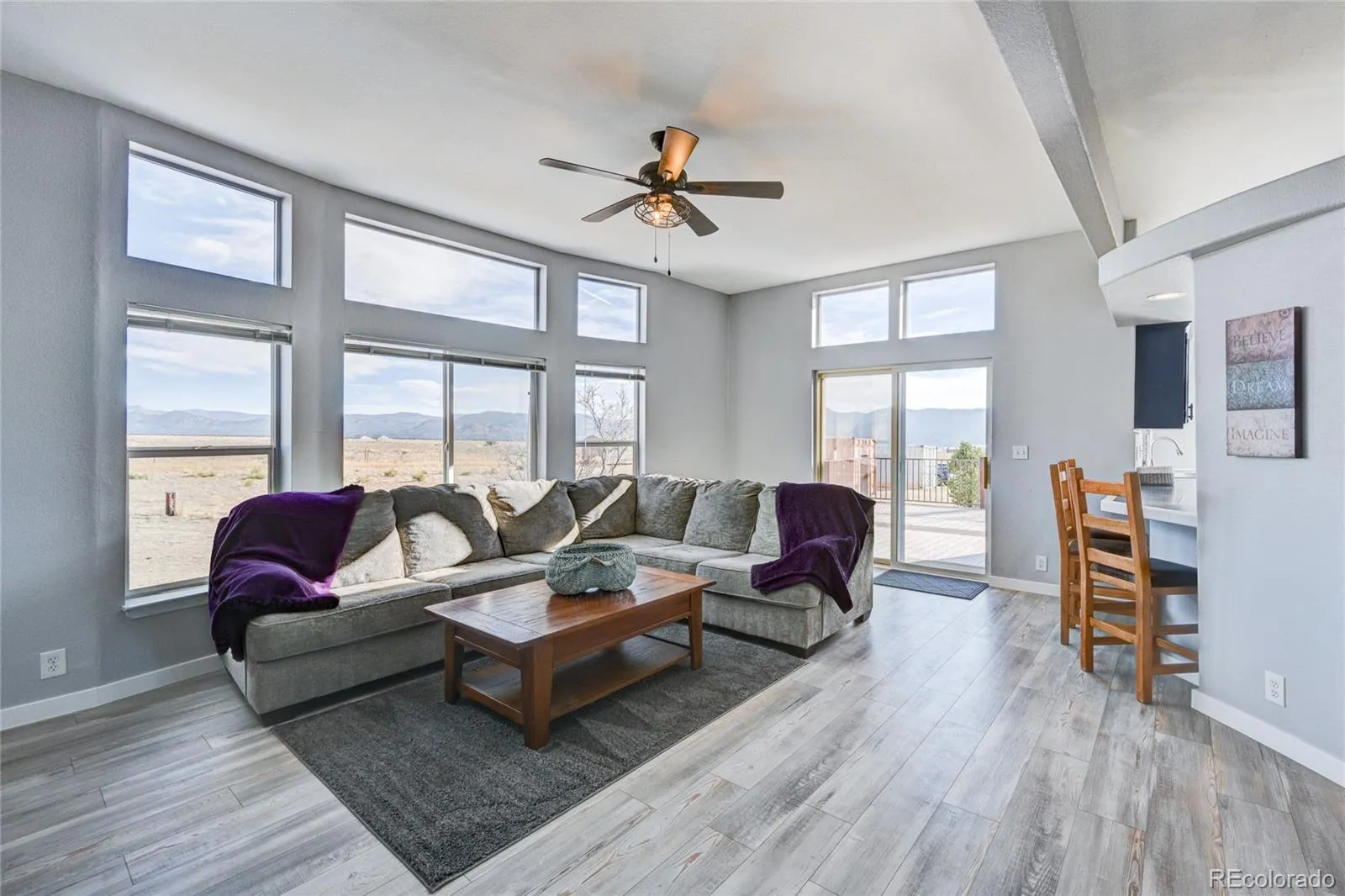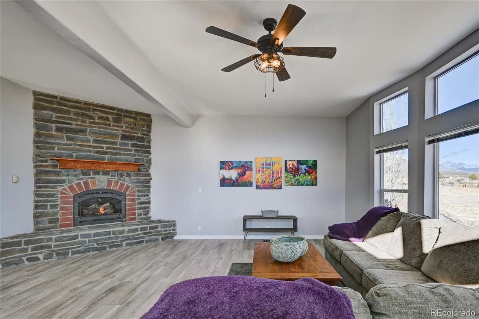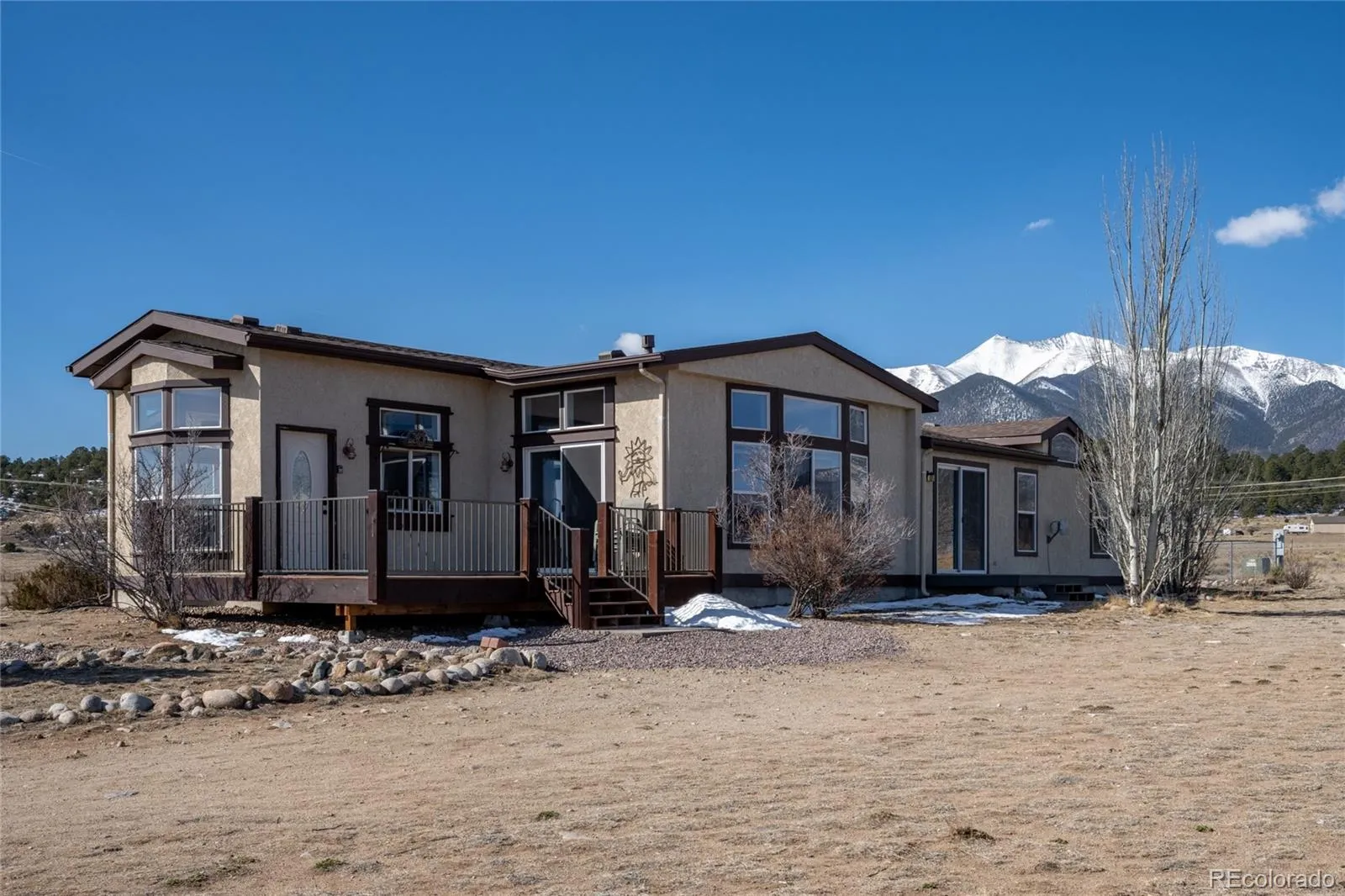 Fantastic horse property on just under 13 acres with truly unmatched views. This exceptional property allows up to three horses with outside watering and offers breathtaking panoramic views of both the Collegiate Peaks and the Chalk Cliffs. The home has been beautifully remodeled throughout, creating a bright and spacious open floor plan that feels both comfortable and inviting. The kitchen is thoughtfully designed with all stainless steel appliances, a delightful center island, and an eat-in kitchen, along with a separate dining area. The counter bar opens to the family room, making it ideal for the family and entertaining. Decorative touches such as coffered ceilings and planter shelves add character and charm. The family room features large picture windows that capture the Collegiate Peaks and Chalk Cliffs, along with an attractive rock-accent gas fireplace and welcoming foyer entry. The primary suite is generously sized and large walk in closet along with a cozy den just off the east side. The fully remodeled primary bathroom showcases a rock accent wall, deep soaking tub, spacious tile walk-in shower, toilet closet and comfortable in-floor heating. One other bedroom, an office and a ¾ bathroom, and a utility room with washer and dryer included provide great functionality. Outdoor living is just as enjoyable, with a composite deck off the kitchen on the north side, private dog run, and planter boxes on the west side. The property is fully set up and ready for horses, featuring a three stall barn, tack room, hay shed, two storage sheds, heated and lighted waterers and feeders, and a corral pen. A few aspen trees. Circle driveway and plenty of room for parking. If a person desires, they could add a nice size detached garage. This is hard to find as there’s not much horse property out there. Serial Number of the Western Manufactured Homes, Model #MO-8 is: #17613352ABCP. Call now for private showing.