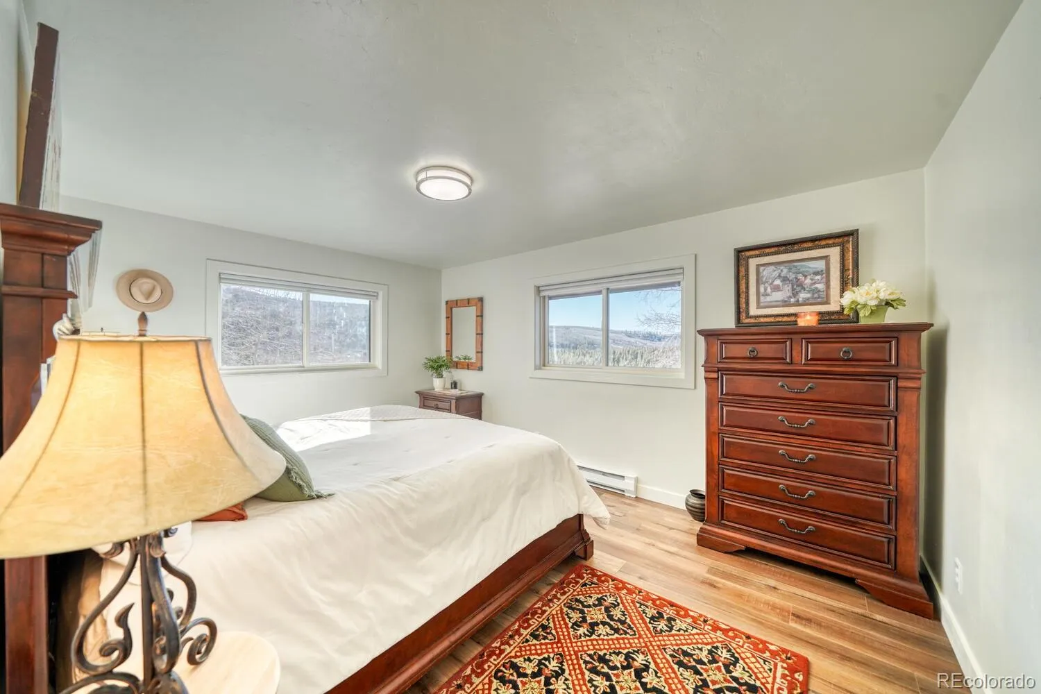 VIEWS, VIEWS, VIEWS: Welcome to this charming updated 2-bedroom ranch! Upon entering, you’ll be inspired by breathtaking views of the Rocky Mountain peaks. Expansive windows fill the space with natural light. The finished walkout basement features a sliding door that invites you to enjoy extra outdoor living space. The current owners have dedicated several years to updating this home, making it easy for you to move in & start enjoying your new sanctuary right away. Some of the upgrades include energy-efficient Renew by Anderson windows, a durable metal standing seam roof, a new quartz kitchen countertop & a convenient on-demand hot water heater. Plus, you’ll be grateful for the luxury vinyl plank flooring, ideal for mountain living. Cozy up by one of the 2 fireplaces—there’s a propane insert on the main-level living room & a pellet stove insert in the downstairs office, perfect for chilly evenings. The pride in ownership really shines through as soon as you step inside. Come see for yourself!