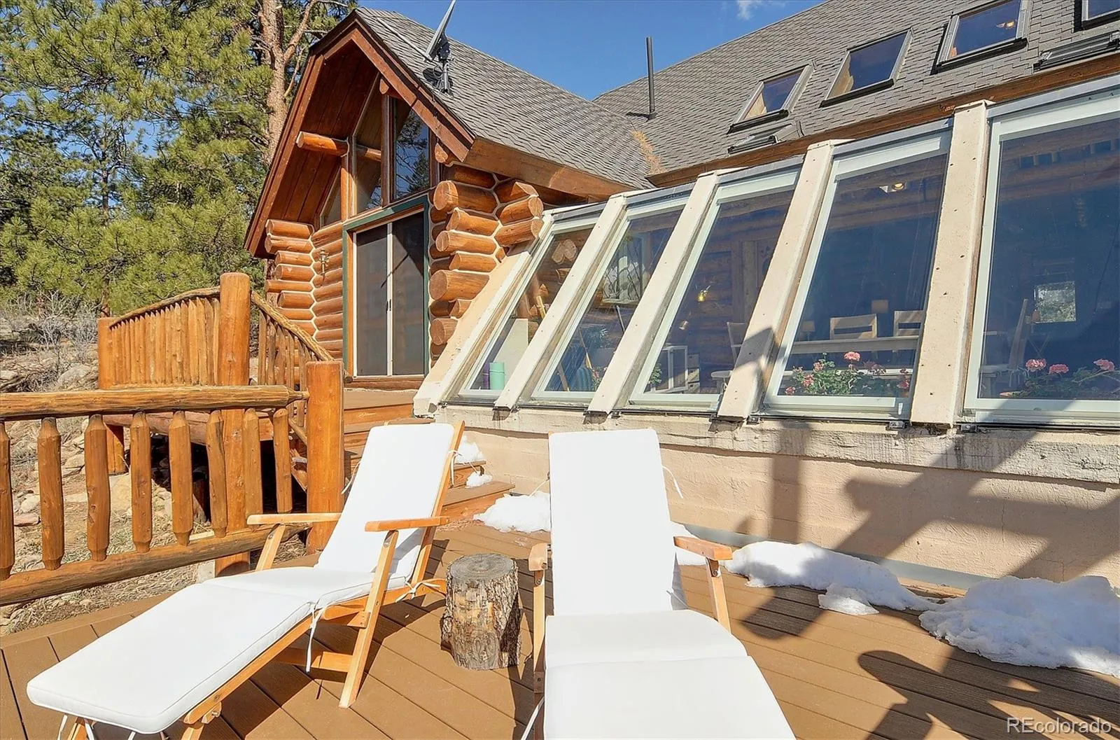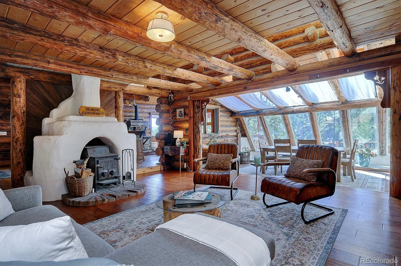 An authentic mountain haven offering an exceptional opportunity to embrace the lifestyle you’ve been dreaming of. This inviting log home on 2 acres is a peaceful place where mountain living unfolds naturally. Mornings begin on the sun-soaked wraparound deck with coffee in hand, breathing in the crisp alpine air. Evenings are spent under a sky full of stars. The forest just beyond your door invites quiet walks and endless exploration. Inside, the 2496 SF home blends rustic character with comfortable living. Handcrafted log details and a beautiful wood stove set on a striking hearth create a warm and welcoming atmosphere in the living room—the kind of space where family and friends naturally gather. The sunroom, designed with passive solar principles, fills the home with natural light year-round and provides a peaceful spot to enjoy morning coffee, read a favorite book, or expand the dining space. In the kitchen, the charming cook stove adds a touch of nostalgia, perfect for cozy winter evenings, while modern conveniences include a built-in oven, gas cooktop, granite countertops, and a spacious pantry. The primary bedroom offers a restful retreat with doors to the back deck, a beautifully tiled three-quarter bath, and a convenient laundry center make everyday living easy. The dedicated office provides the perfect space for working remotely, reading, or creative pursuits. Up the handcrafted log staircase, two additional bedrooms, a full bath with a classic cast-iron soaking tub, and a light-filled loft bonus space create room for guests, hobbies, or quiet moments. An oversized two-car garage offers abundant space for vehicles, gear, and mountain toys, along with loft storage and even a climbing wall for a fun, adventurous touch. With nearby access to the National Forest and two stocked neighborhood ponds, this property offers privacy, comfort, and year-round mountain adventure. Inquire about the inspection report and estimates. This property is being sold AS-IS.