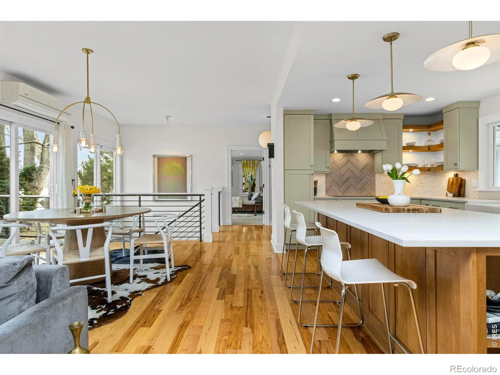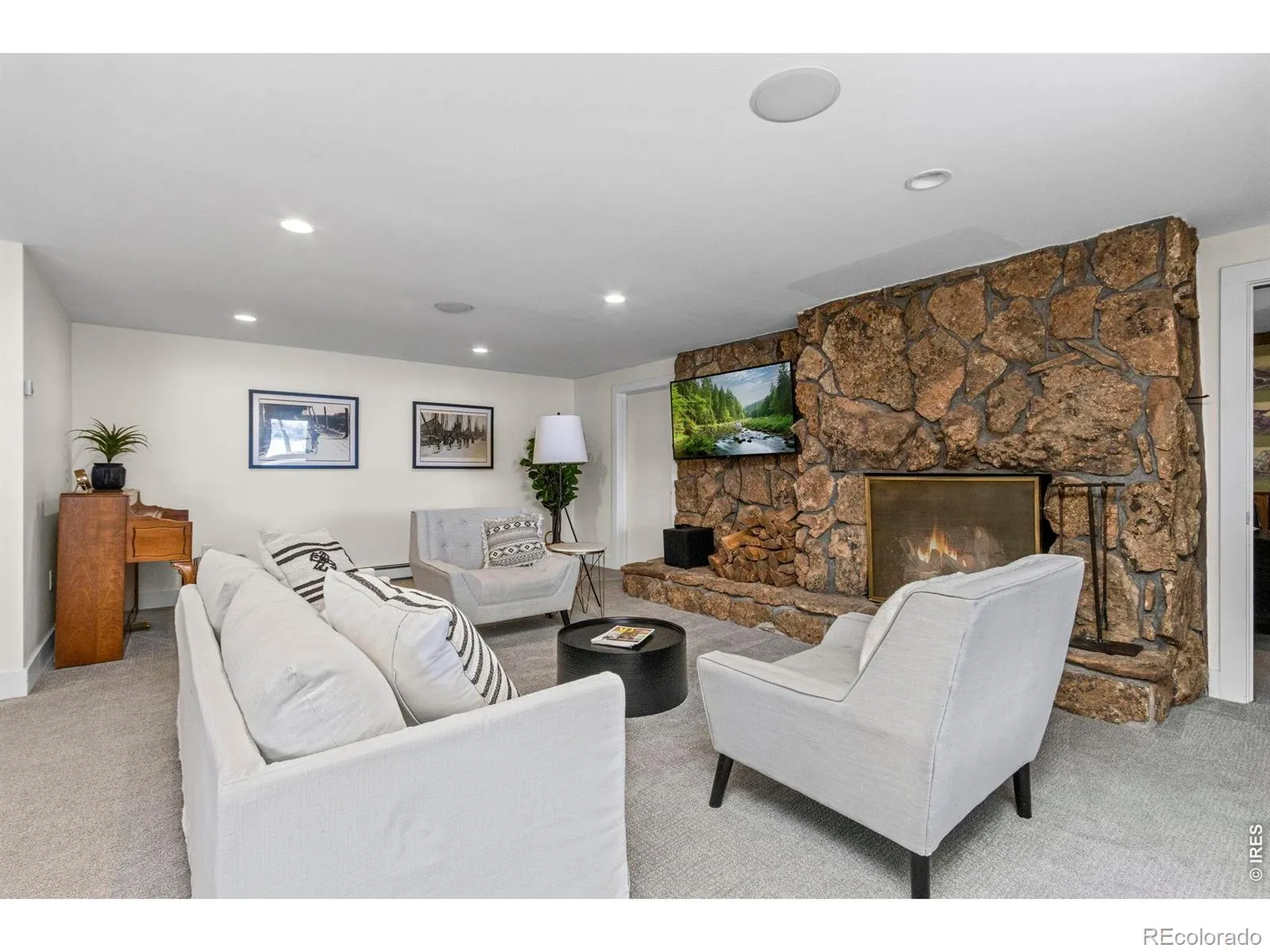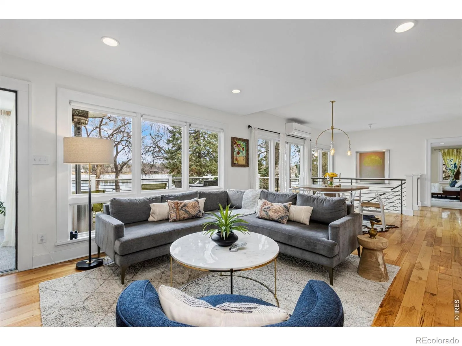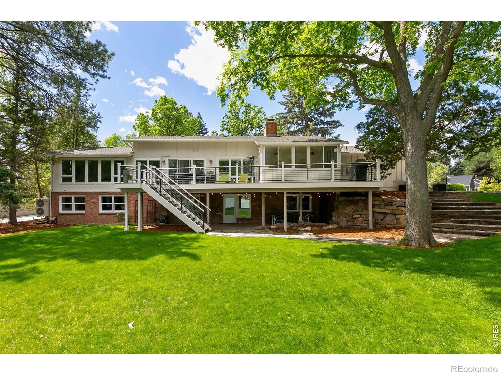 Lakefront living at its best on Lindenmeier Lake, designed to impress on .33 acres of fun. Located in one of Fort Collins’ most sought-after neighborhoods, less than 10 minutes from Old Town Fort Collins, this fully remodeled mid-century ranch charmer with a walk-out basement showcases stunning water views along the entire north side of the home on both levels-perfect for lake days of fishing, swimming, boating, and paddleboarding, with bird watching to close out the day. The open-concept main level, designed for both comfort and entertaining, featuring a spacious living room with a cozy gas fireplace, in-floor radiant heating, hickory hardwood floors and expansive Semco windows capturing serene lake views. The designer kitchen showcases custom Milarc cabinetry, induction cooktop, velvety smooth honed quartz countertops and top end appliances, flowing seamlessly into the dining and living spaces to create the perfect gathering place for family and guests. The main level also features a convenient laundry room, mudroom, and powder bath, along with a versatile flex space ideal for a home office, or additional bedroom. The large main-level primary suite is a true retreat, complete with a fully upgraded 3/4 bath and a generous walk-in closet. An additional bedroom with its own walk-in closet and a hall full bath completes the main level. Downstairs is where the fun really happens, with a spacious second living area, wet bar, fireplace, office and 3 additional bedrooms with a full bath. The walk-out basement opens directly to the mature professionally landscaped backyard oasis with lake access, creating the perfect setting for entertaining and relaxing. Take it all in from the large Trex deck or head down to the water for a dip. This beautiful home is located within a community offering exceptional amenities-including private equestrian center, parks, beaches, tennis courts -blending nature, recreation, and refined living just minutes from the heart of Fort Collins.