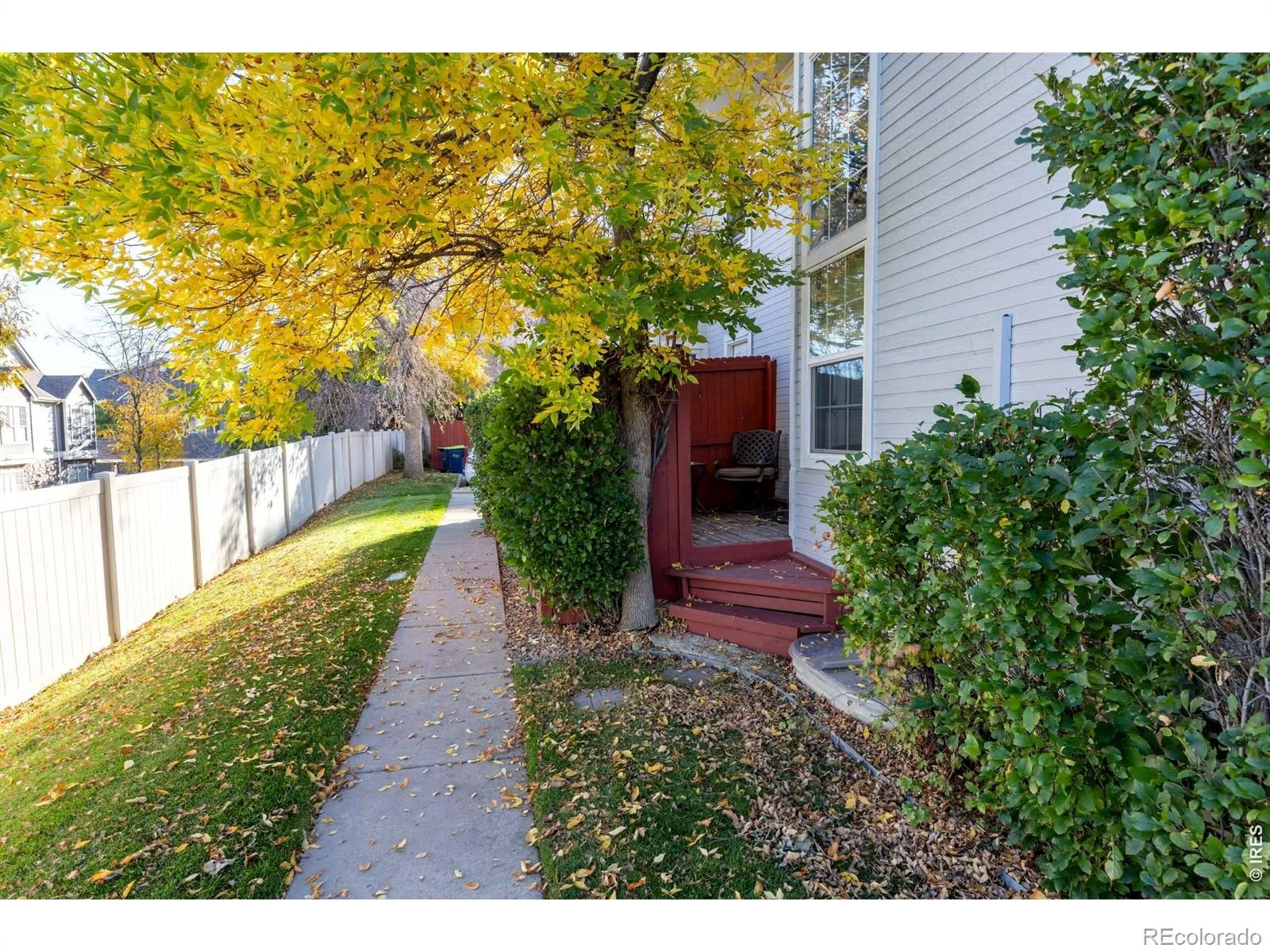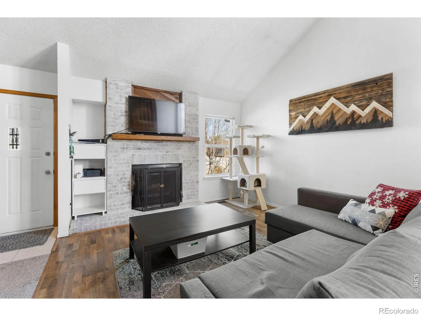 Fantastic END-UNIT townhome-style condo with no one above or below you! Ideally positioned within the complex facing a grassy open area, this home offers added privacy and a peaceful setting. Move-in ready with numerous updates including NEW WINDOWS, fresh interior paint, NEW carpet, new oven/stove, NEW refrigerator, NEW microwave, and a new sump pump. The open floor plan features VAULTED ceilings, NEW LVP flooring in the family room, and a cozy wood-burning fireplace. The kitchen shines with beautiful granite countertops, a PANTRY, NEW dishwasher and NEW refrigerator, and direct access to your private north-facing patio; perfect for relaxing or entertaining. Upstairs offers a large bedroom plus a versatile LOFT space ideal for a home office, workout area, or additional living space. The unfinished full basement provides excellent potential to expand with future bedroom(s), recreation space, or simply enjoy the abundant storage. The laundry area is located in the basement. Centrally located with easy access to I-25 and within walking distance to Willowbrook Park, shopping, and everyday conveniences. This is low-maintenance living with space, privacy, and future potential all in one. HOA includes not only roof and exterior, but also water and sewer!