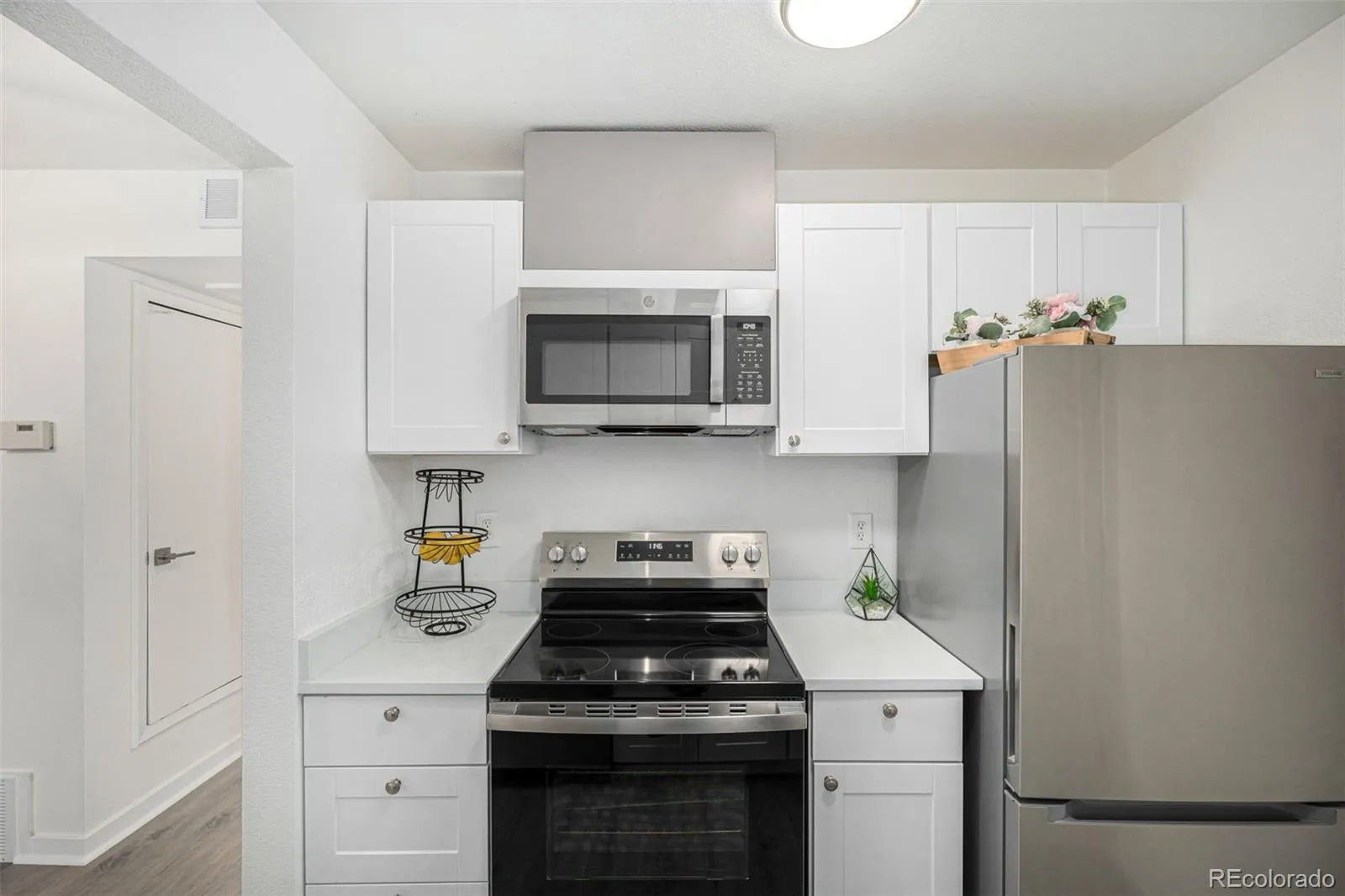 Check out this lovely condo now available in Pebble Creek. Inside, you will find a spacious dining and living area featuring elegant wood look flooring and a crisp, neutral palette throughout, creating an inviting space that is perfect for relaxing or entertaining guests. The kitchen is thoughtfully designed with shaker cabinetry, quartz countertops, a pantry, and stainless steel appliances, offering both style and functionality for everyday cooking. The sizeable bedroom provides a comfortable retreat and includes a walk in closet along with private access to a charming balcony, an ideal spot to unwind and enjoy a peaceful summer evening. The home also includes an assigned carport parking space and access to a refreshing community pool, adding to the convenience and lifestyle this property offers. This is a wonderful opportunity to own a comfortable and well maintained condo in Pebble Creek.