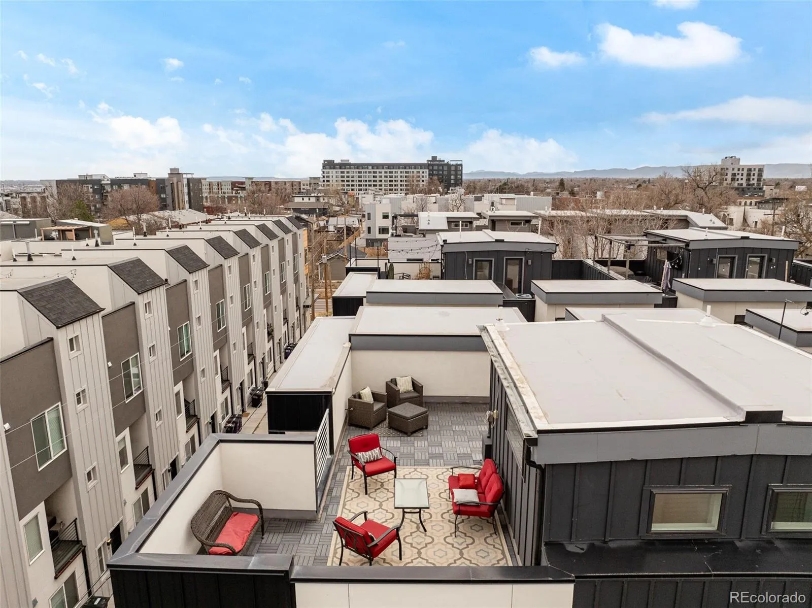 Elevated living awaits in this stunning Euro-inspired townhome, perfectly positioned in Sloan’s Lake just four blocks from the park. This striking residence exudes sophistication with a high-end finish package, showcasing wide plank wood floors, designer lighting, stylish tile and luxurious bathrooms. The chef’s kitchen boasts two-toned cabinetry, sleek quartz countertops, KitchenAid appliances, a waterfall island with seating, and beverage station with elegant shelving seamlessly connecting to a spacious living room grounded by a modern fireplace. The primary retreat offers restful relaxation with soaring ceilings, two closets, an en-suite bath featuring a dual vanity and a large walk-in shower. Unwind outdoors on one of three private covered balconies or soak in panoramic city and mountain views from the expansive rooftop deck. A convenient upper level laundry closet with a stackable washer and dryer set adds everyday ease. With a two-car attached garage and proximity to Sloan’s Lake Park, Empower Field at Mile High, Edgewater Market, Highlands Square, LoHi, Jefferson Park and downtown, this townhome perfectly blends urban convenience with refined design. **NO HOA. There is a party wall agreement in place. A maintenance company takes care of mowing the front area and snow removal for the community – currently $91/month.