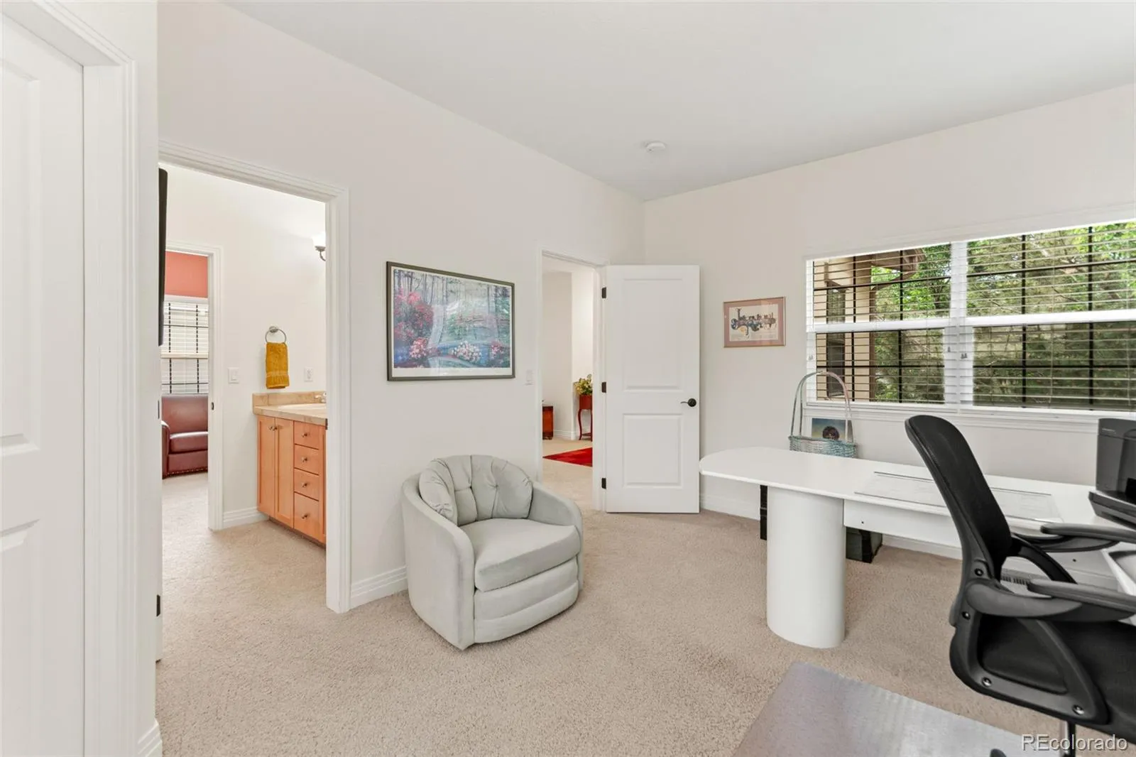 Thoughtfully designed for comfortable main level living, this beautifully maintained home in Denver’s sought after Lowry neighborhood offers a flexible floor plan with space to live, work, and entertain. The home features a main floor primary suite along with a second main level bedroom and full bath, a highly desirable layout ideal for guests, a home office, or multigenerational living. Low maintenance outdoor spaces and a lock and leave lifestyle make this home ideal for those seeking the comfort of a single-family home without the upkeep of a large yard. The main level showcases cherry hardwood floors, a bright sunlit living room with gas fireplace, and an open flow to the dining area and well-appointed kitchen with granite countertops, stainless appliances, and ample cabinetry. The main floor primary suite includes a walk-in closet, luxurious five-piece bath, and private deck access. A second main level bedroom, currently arranged as a home office but easily converted back to a traditional bedroom, sits adjacent to a full bathroom and convenient mud and laundry room. Upstairs, a spacious loft with built in shelving offers the perfect space for a reading room, workspace, or additional living area. Two additional bedrooms, one currently used as an office, both feature walk in closets and share a full Jack and Jill bathroom. The finished basement adds versatility with a large family room and wet bar, ideal for entertaining or fitness space, along with a generous bonus room, private guest bedroom, full bathroom, wine cellar, and multiple storage areas. Outdoor living includes a private front patio, side yard, and a deck off the primary suite perfect for outdoor dining or relaxing. Located just moments from Lowry’s parks, trails, restaurants, and neighborhood amenities, this home offers space, flexibility, and convenience in one of Denver’s most desirable communities.