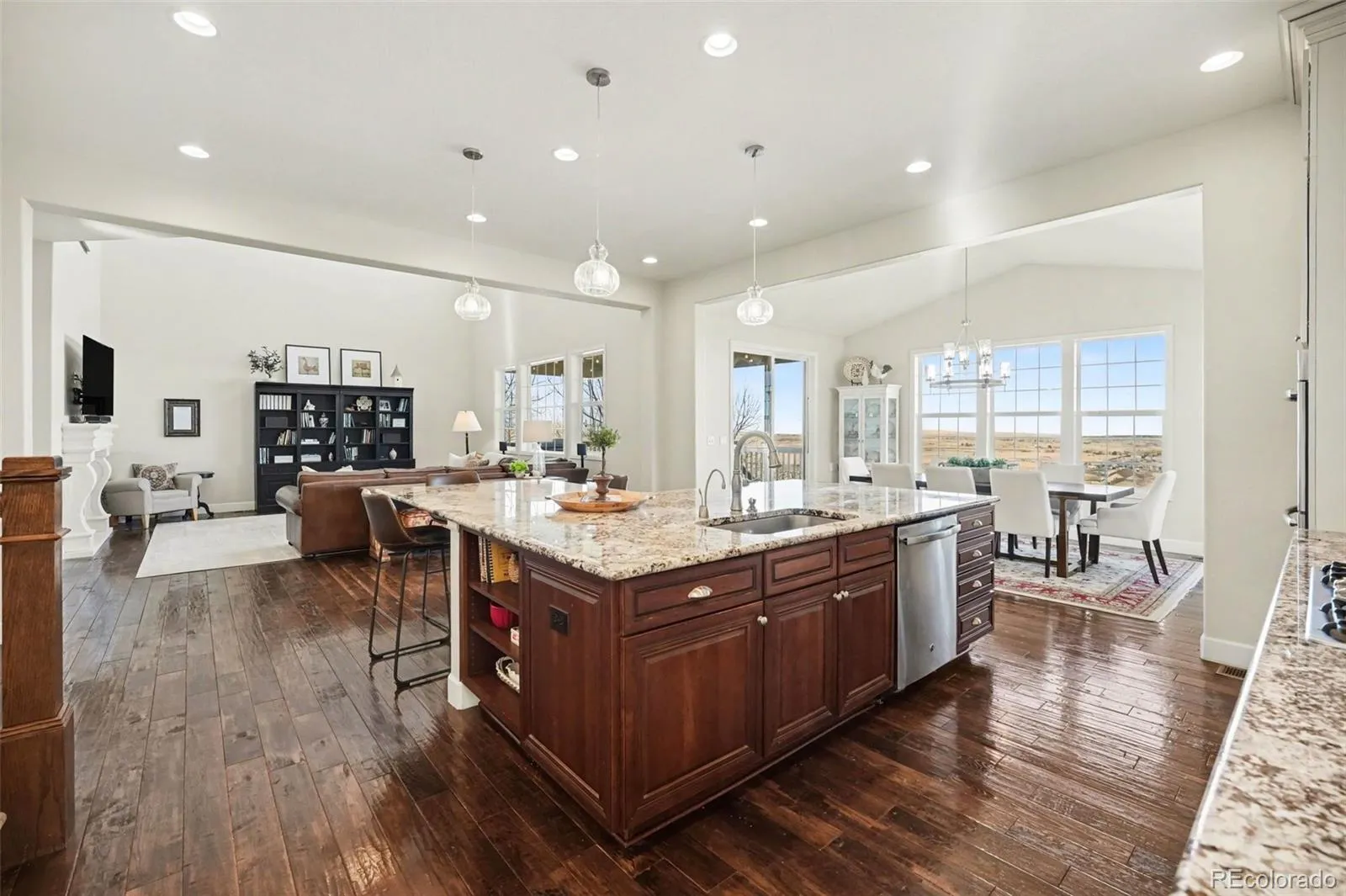 COMING SOON! This exceptional 6 bedroom, 6 bathroom residence is ideally positioned in a serene setting with sweeping 180 degree views of Standley Lake & the Downtown Denver skyline. Backing to open green space with direct access to scenic biking & hiking trails, the home offers a rare blend of privacy, natural beauty & outdoor access. A grand entrance welcomes you with a mahogany front door, soaring ceilings, chandelier & dramatic double sided staircase. Hardwood floors flow throughout the main level & the entry showcases a handcrafted inlaid tile mosaic. The formal living room is filled with natural light, creating a warm space to relax beside one of the home’s three fireplaces. The main level also features a private office, along with a main floor bedroom & 3/4 bath ideal for multigenerational living or guests. The beautifully updated kitchen features a remodeled Butler’s pantry & opens to expansive gathering spaces designed for entertaining & everyday living. Gather around the marble T shaped island with ceiling height cabinetry, tile backsplash, gas stove & pendant lighting. The formal dining room sits just off the kitchen with incredible views. Upstairs, retreat to the expansive primary suite with a private reading den, fireplace, five piece bath & impressive walk in closet. The upper level also includes a 2nd guest suite & two additional generously sized bedrooms connected by a shared full bath. The finished basement expands the home’s versatility with an additional bedroom, full bath & flexible living space ideal for a home theater, game room or recreation lounge, plus ample unfinished storage. Enjoy the private backyard hot tub or breathtaking sunrises from the covered east facing deck with sweeping views. Residents also enjoy two pool & fitness centers, six parks, tennis courts, scenic trails & an on site K-8 school. This stunning property is sure not to last long!