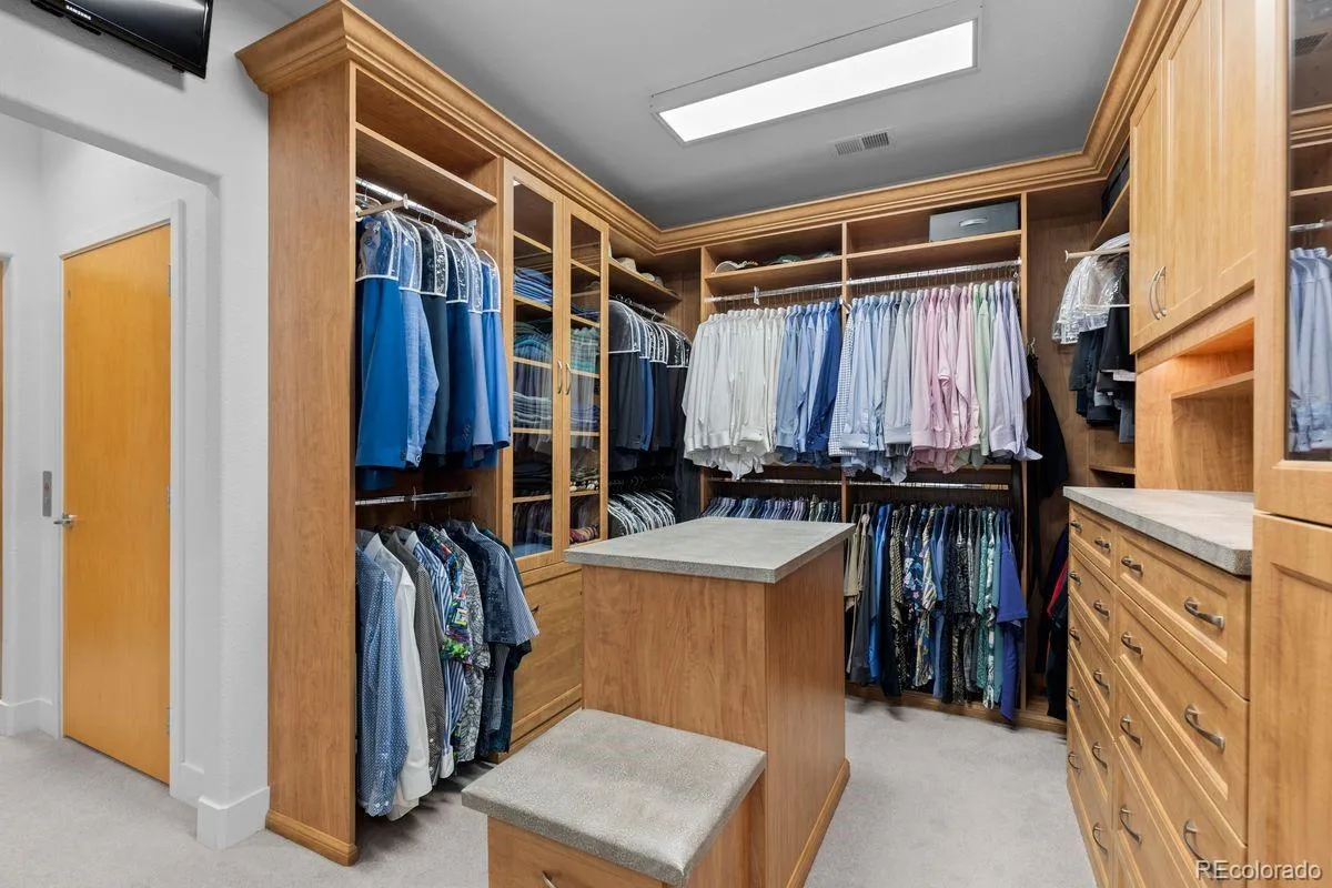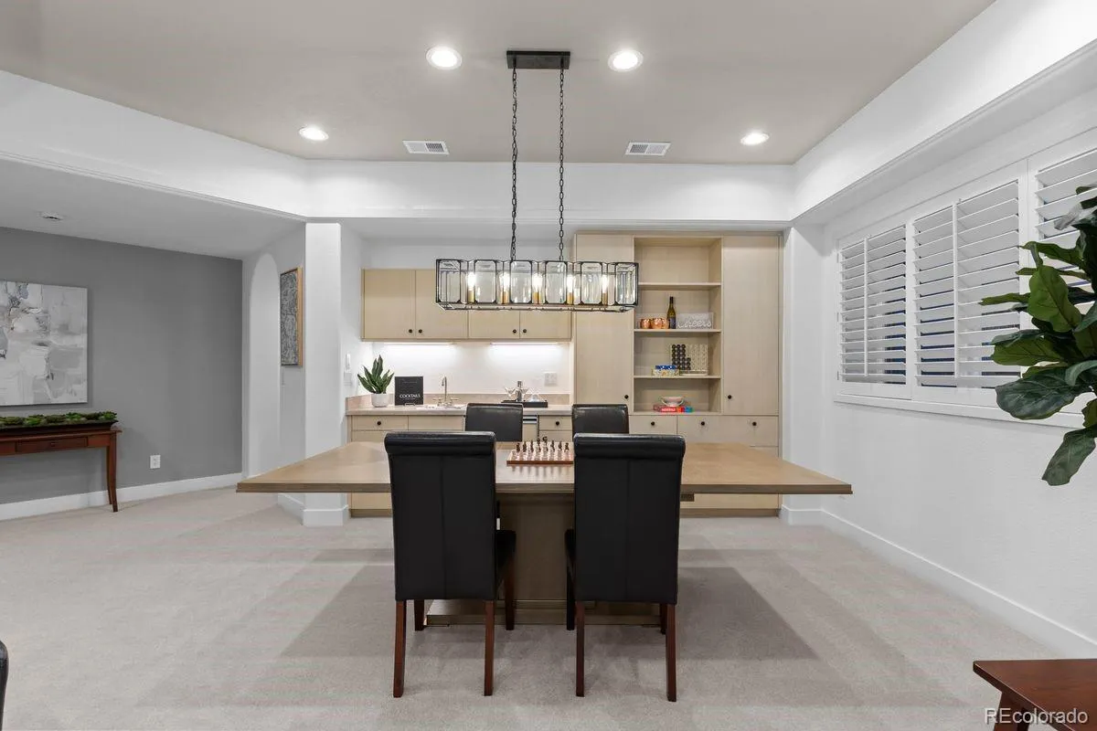 Designed by renowned architect Michael Knorr and maintained to a meticulous standard, this distinguished contemporary residence encompasses more than 7,600 square feet across three levels; a home conceived without compromise and kept without exception. Soaring ceilings, ebony-stained hardwood floors, and an abundance of bespoke built-ins set the tone from the moment you arrive. The dramatic two-story entry opens to a formal dining room, presided over by a one-of-a-kind Swarovski lead crystal chandelier. The sweeping great room features a gas fireplace and custom maple architectural wall paneling. The chef’s kitchen includes a Thermador six-burner gas range, dual Bosch dishwashers, a SubZero refrigerator, slab granite counters, and a large island with eating bar — all oriented around a sun-filled dining nook and sitting area. The primary suite is a private retreat with a gas fireplace and five-piece bath that includes a walk-in steam shower with dual spray heads and deep soaking tub. An expansive his-and-hers walk-in closet includes a built-in safe and unique floor-to-ceiling glass tie display case. The upper level is completed by two additional bedrooms with en suite baths and a laundry room. A finished basement includes music room with soundproof insulation, media room with built-in surround sound, wet bar with Scotsman ice maker, mirrored exercise room, and craft room with dry-erase wall and wrapping station. A Morning Star elevator connects all three levels with quiet ease. A Honeywell security system with wired window screens, and glass and motion sensors provides layered protection, for those who value security. Two heated garages with three bays, epoxy flooring, and EV charging complete a home where every practical need is met. Two blocks from Graland Country Day School and the 24-acre Cranmer Park, five minutes from Cherry Creek’s premier dining and boutiques. To find a home of this quality is uncommon. To find one this carefully preserved is extraordinary.