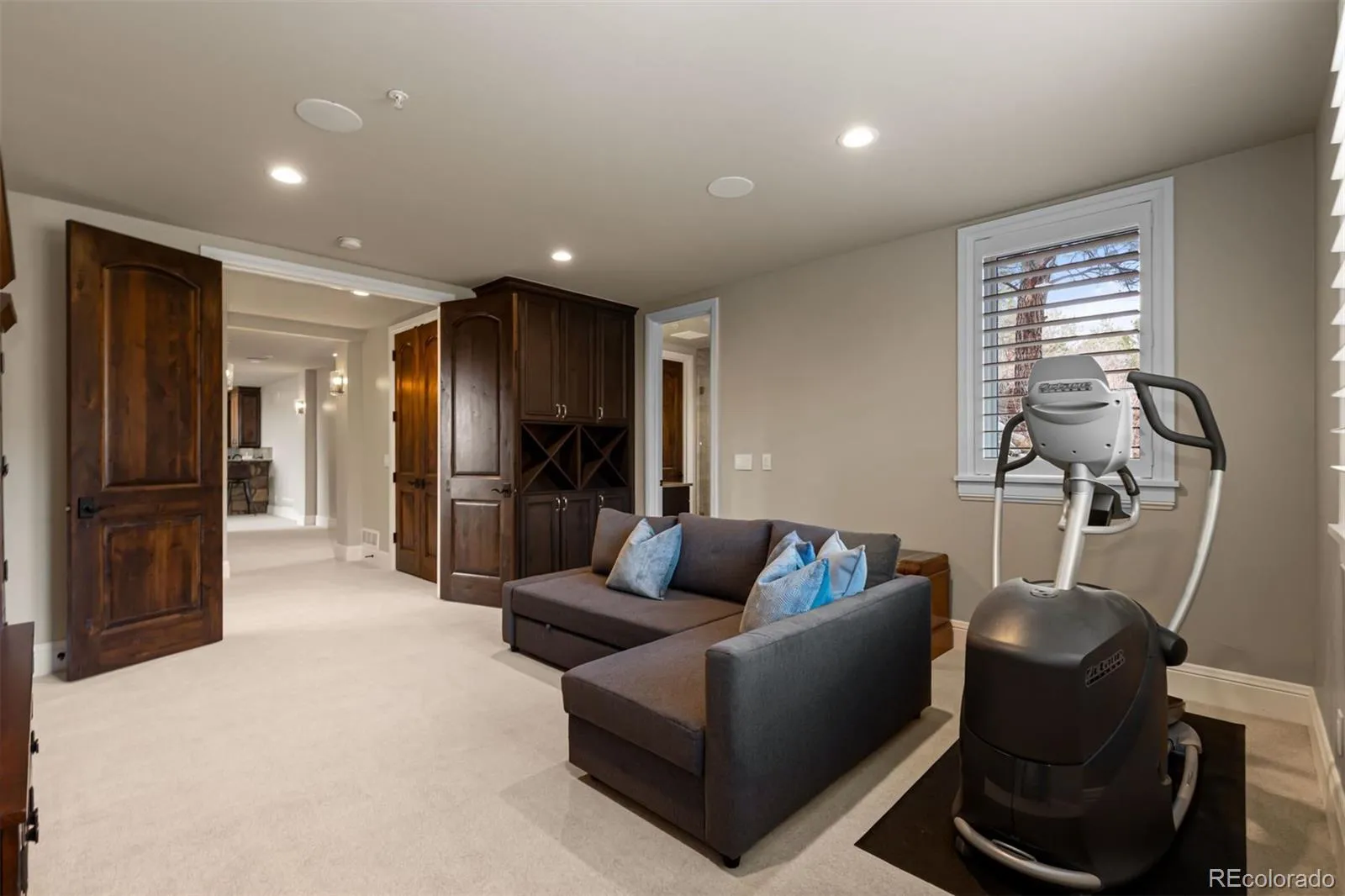 This fully updated, exceptionally built 5 bedroom | 6 bathroom residence showcases sweeping Front Range views from nearly every room and is surrounded by mature pine trees, lush landscaping, and open space behind. The inviting stone, brick, and wood exterior flows seamlessly into a barrel-ceiling foyer that opens to a vaulted great room beyond, with gas fireplace, exposed wood beams, and expansive windows showcasing multi-hued Front Range sunsets. At the heart of the home, the redesigned kitchen features a Sub-Zero refrigerator, Wolf appliances, granite counters, large center island, and adjacent bar with wine fridge and 2nd sink – perfect for entertaining. Offering a welcoming spot for everyday living, the open concept family room sits adjacent to a sunny breakfast nook with glass French doors opening to a back deck with unobstructed mountain views, creating an ideal setting for morning coffee. Nearby, the dining room provides an elegant space for gatherings. The primary bedroom has vaulted ceilings, wood beams, a gas fireplace, and mountain views, while a remodeled en suite bathroom includes distinctive 2-level octagonal tray ceiling with wood accents. A custom designed office, two updated powder rooms, laundry room, and a 3-car garage add flexibility and convenience to the main level. Moving downstairs, the walkout lower level offers high ceilings, a 4th gas fireplace and oversized windows that bring in abundant natural light. The game room and recreation area feature a full wet bar with two wine columns holding approximately 300 bottles, while four lower level bedrooms, all with remodeled en suite bathrooms and walk-in closets, provide comfortable family and guest accommodations. Outdoor living extends seamlessly from the lower level to an expanded paver patio accented by a fire pit and a covered seating area with outdoor TV. An inviting setting to relax and take in coveted Castle Pines Village sunsets and sweeping views, this home is simply one-of-a-kind!