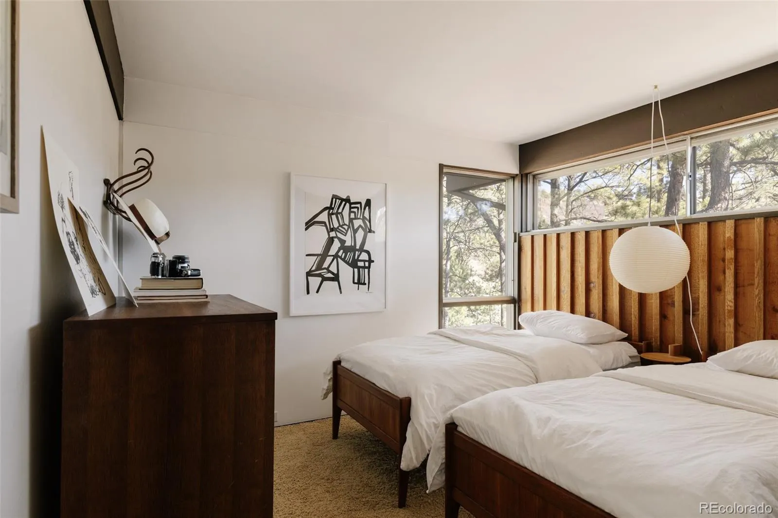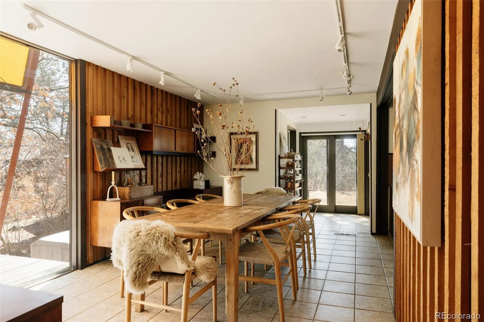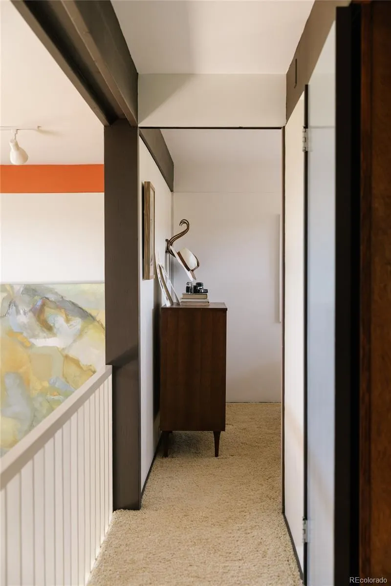 The Ditto House, a truly rare property with exceptional architectural pedigree, original integrity, and over two private acres with mountain views. Designed by prominent architect James Ream, who began his career working in the office of Eero Saarinen before moving to Denver to work with William Muchow and later establishing his own practice. You enter the property from a bridge adjacent to the garage that mirrors the same architectural details as the home. In Japan, entering a home from a bridge represents a symbolic boundary, linking the human realm to the natural world, while facilitating a calm, and contemplative, everyday entrance.