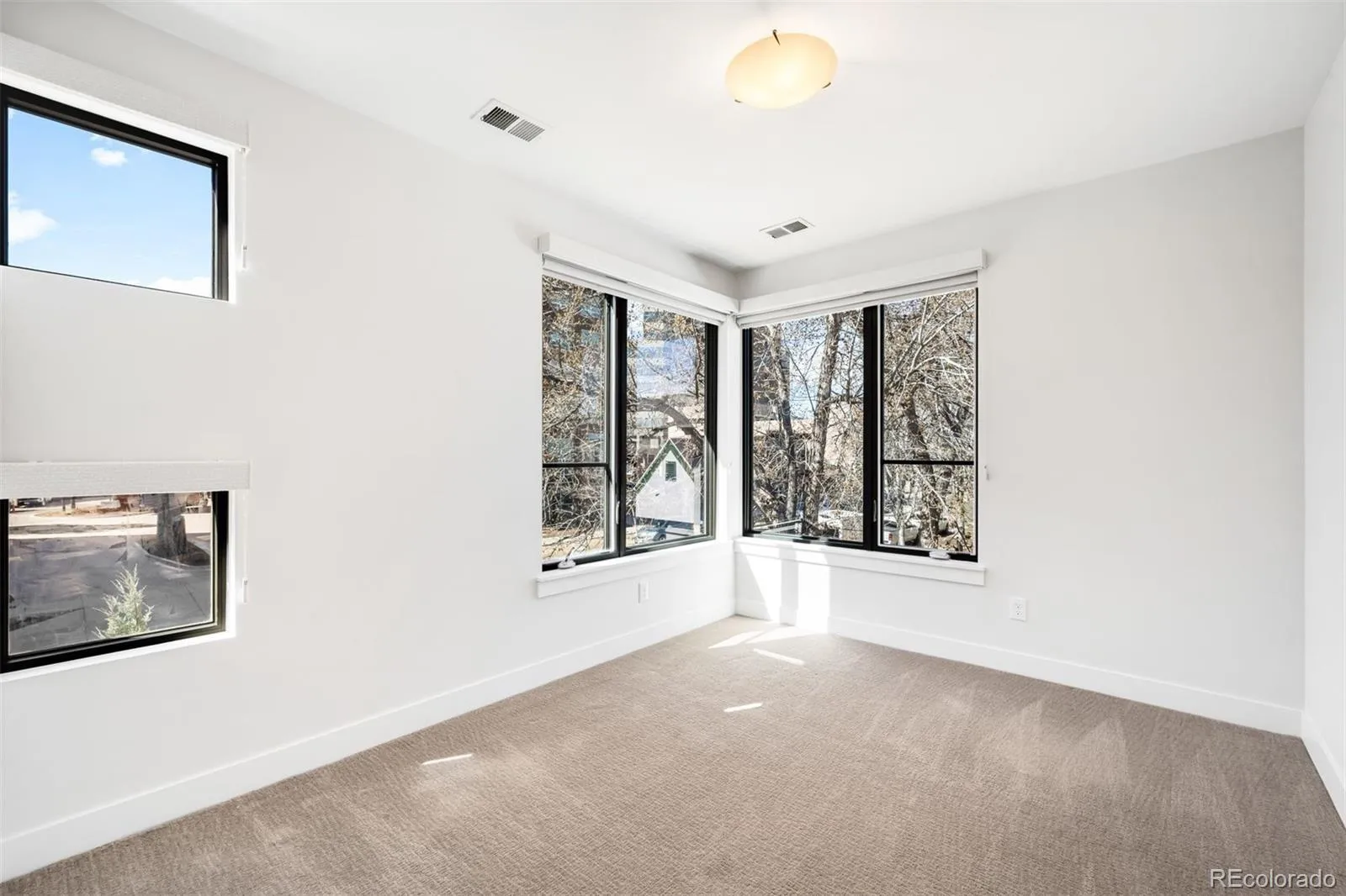 Perfectly positioned on a quiet, tree-lined street in the heart of Cherry Creek, this striking contemporary residence offers a refined urban lifestyle just moments from Denver’s premier boutiques, acclaimed restaurants, galleries, and cafés. Thoughtful architecture and expansive windows fill the home with natural light while creating a seamless balance of modern design and comfortable living. The main level unfolds with a bright open floorplan anchored by a stunning living room with a sleek fireplace and oversized sliding glass doors that create seamless indoor outdoor flow to the private backyard. At the center of the home, the chef’s kitchen features honed Marble countertops, an expansive island with seating, Viking stainless steel appliances, double ovens, and a built-in Miele coffee maker, ideal for both everyday living and elevated entertaining. A spacious dining room and a beautifully appointed office with custom wood built-ins complete the main level. Upstairs, the luxurious primary suite offers a peaceful retreat with soaring ceilings and a spa-inspired five-piece bath featuring a soaking tub, glass-enclosed shower, dual vanities, and a generous walk-in closet. Two additional bedrooms, a shared full bath, and a conveniently located laundry room complete the upper level. The rooftop level features an extraordinary deck spanning nearly 600 square feet, creating a rare outdoor entertaining space in the city, perfect for hosting gatherings or enjoying Colorado sunsets. The finished lower level adds versatility with a spacious rec room, media room, and a private guest suite with an en-suite bath. Complete with a private yard, outdoor fireplace, and a detached two-car garage, this exceptional residence offers modern design, effortless livability, and an unbeatable Cherry Creek location just blocks from Denver’s most vibrant shopping and dining district.