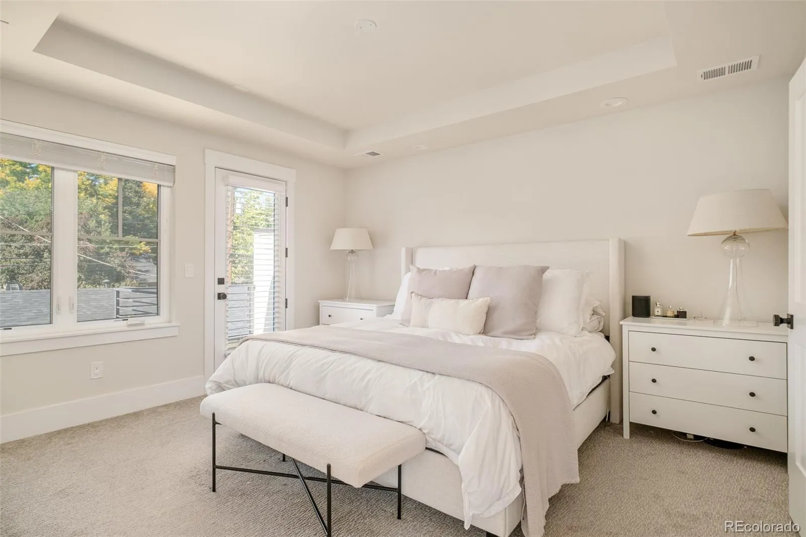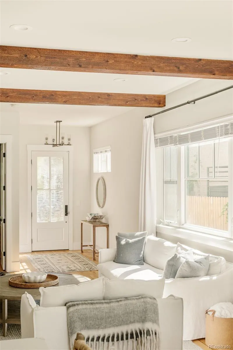 A rare retreat in Congress Park, this newer-build duplex blends modern farmhouse charm with sophisticated design. An airy open-concept floorplan welcomes residents with high ceilings, exposed wooden beams and a living room anchored by a stylish fireplace. The gourmet kitchen boasts a vast center island, sleek cabinetry and high-end appliances, while sliding patio doors open to a beautifully landscaped, fenced yard with a sprawling patio for seamless indoor-outdoor living. A sunlit home office completes the main level. Upstairs, the luxurious primary suite features a private balcony, a large walk-in closet and a spa-like bath, accompanied by an additional en-suite bedroom and a full laundry room. The finished basement extends the living space with a rec room, wet bar, a third bedroom, bath and generous storage. With a two-car garage, modern finishes throughout and a prime location near the shops and restaurants on 12th and Madison, this residence offers elevated living at every turn.