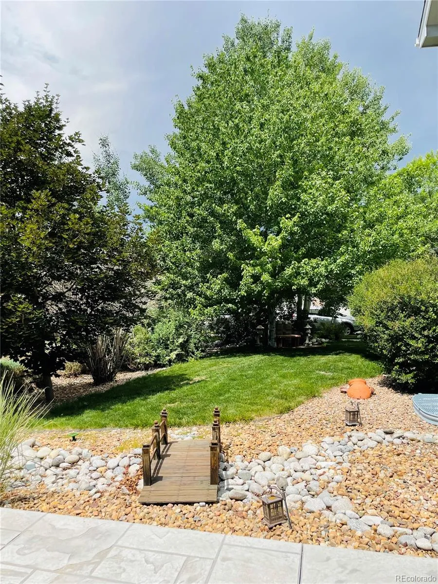 LOCATION! Located in the center of the desirable Broadlands community, with quick access to I-25, C-470 and also Hwy 36, close to Safeway and King Soopers and other food markets, Costco as well as Flatirons Shopping Center and Orchard Town Center. Walking trails all around, a swimming pool and a playground across the street. This corner lot house features 5 bedrooms and 4.5 baths, hardwoods throughout as well as tremendous 2-story open concept living area with vaulted ceiling with built -in speaker/wiring pre-installed and fiber filling between all the walls for sound barrier. The family room has gas fireplace with huge windows to allow lots of natural light and open to an eat-in kitchen with a large island for gathering with huge open space for entertaining guests. The upper level has a huge master bedroom that features bay window with a large bathroom with shower and bathtub, separate sinks and separate walk-in closets. The guest room with private full bathroom, and 2 additional bedrooms have shared jack-jill bathroom. Front entrance you will find the large stamped concrete leading to a front covered porch. Stamp concrete path continues to the back of the house leading to the huge stamped concrete patio big enough for a nice family gathering.