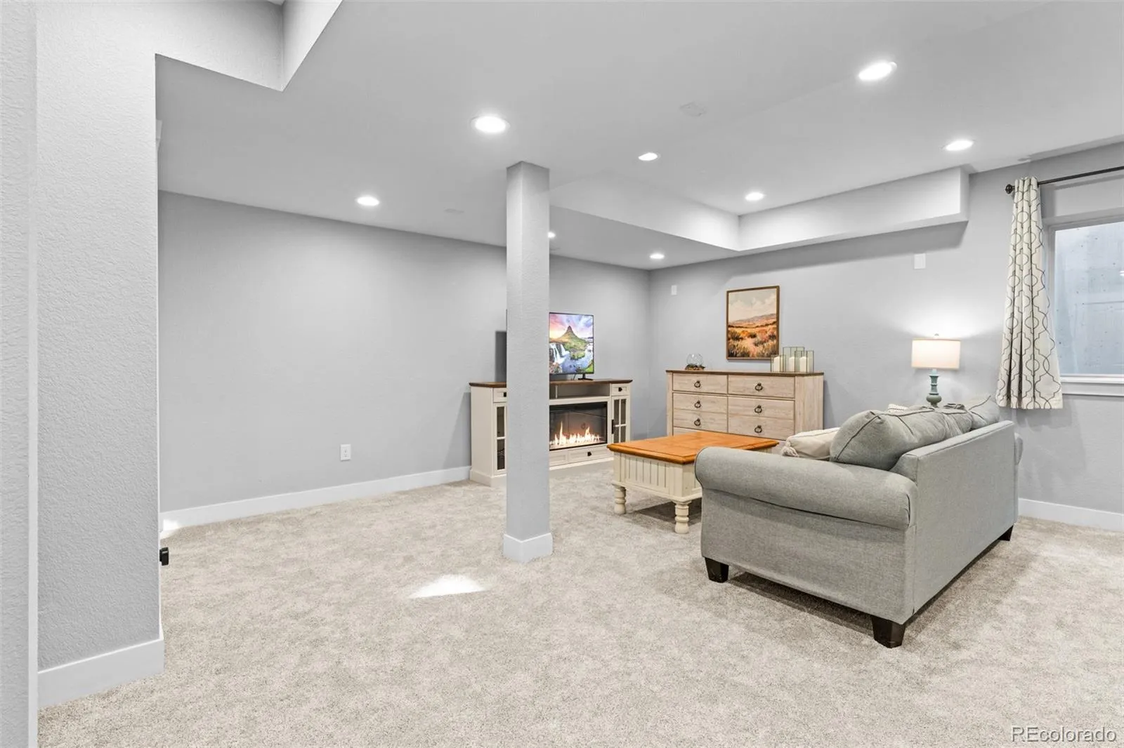 Gorgeously updated and ideally located in Central Park’s desirable Eastbridge neighborhood, this spacious 5-bed, 4-bath residence is completely turn-key, offers incredible access to some of the neighborhood’s best amenities and parks, and is ready for its next owner! From the charming covered front porch to the light/bright interior, you’ll love this home inside and out! The main level features an updated kitchen with newly painted cabinets/new hardware/new faucet/newer stainless steel appliances, a spacious home office, a dining room, a living room with a gas fireplace and motorized blinds, a laundry room, and a powder room. Upstairs, the primary suite offers vaulted ceilings, a walk-in closet, newly installed double-hung windows, and a full en suite bathroom with new lighting and new vanity mirrors. Two additional bedrooms and a full bathroom with a double vanity complete the upper level. The finished basement provides even more functional living space with a large family room, a bar area with a bonus fridge, two additional conforming bedrooms with egress windows (one is currently used as a fitness room), a 3/4 bathroom, utility closet, and an oversized storage room. Outside, the private back yard is perfect for outdoor entertaining and features a patio, brand new sod/mulch, and access to the oversized 2-car garage. So many recent updates including fresh new paint throughout the first and second floors, new basement carpet, a new roof (2024), a new fence (2025), and a new 11 GPM tankless water heater (2025). The location is phenomenal with easy access to the shops and restaurants at Eastbridge Town Center (King Soopers, HashTAG, Cattivella, and Little Man Ice Cream), Stanley Marketplace, Central Park Recreation Center, numerous parks and trails (Bluff Lake Nature Center, Westerly Creek Park, Prairie Uplands Park, Central Park, Sand Creek Trail, and Westerly Creek Trail), downtown Denver, DIA, CU Anschutz, and more. Buyer to verify all information.