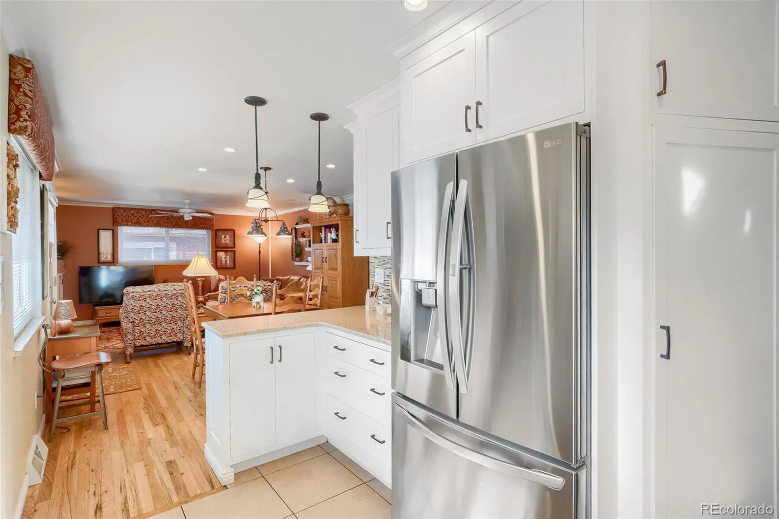 Charming 4 Bedroom Ranch Style Englewood Home! Thoughfully updated throughout! Step into this sun-bathed home and enjoy the warmth of beautiful real wood floors throughout * The inviting Living room features a cozy gas-log fireplace flanked by shelves for displaying books and artwork * Enjoy the remodeled kitchen designed for functionality with abundant counter space and storage * Newer windows throughout with plantation shutters in the bedrooms * The basement offers an additional bedroom plus a spacious family room, storage room, crafting area, and kitchenette/wet bar—perfect for relaxing or entertaining * step outside to the private backyard with covered patio for BBQs and intimate gatherings plus access to the oversized 1000 sq ft three-car garage and …workshop/studio—perfect for hobbies or creative space* Extras include lighted closets, brand-new main-level washer/dryer 2024, crown molding, newer roof, 220-amp electrical panel, sewer line, furnace, A/C 2024, water heater 2024, whole-house water filtration system, retractable electric awning and many additional features * Move-in ready * Welcome home!