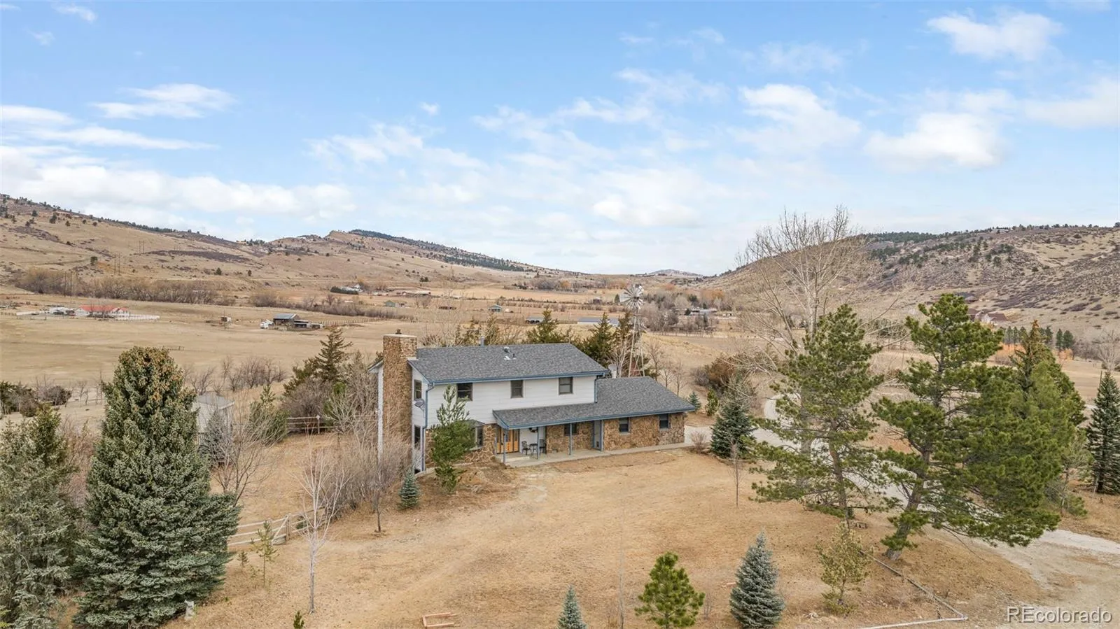 Every so often, you come across a stretch of land that feels less like property and more like poetry. This peaceful 40-acre working farm sits just 10 minutes from Berthoud yet is worlds away—wrapped in rolling hills, shade trees, an orchard, a pond and foothills views that deliver watercolor sunrises and sunset skies. Major investments are already in place, including irrigation infrastructure, tractor and mowing equipment, a coveted CO-Big Thompson water share, and a canal, so you can settle in and get straight to living the dream. The homestead itself has been thoughtfully refreshed with a new roof, updated fencing, fresh flooring, new windows and doors, renewed landscaping, a new electrical panel and furnace, plus a beautifully finished back patio with endlessly soothing birdsong and breezes. The covered front porch invites rainstorm listening and rainbow watching. The land is fully equipped for a thriving farmstead lifestyle: flourishing vegetable gardens, a chicken coop and park, corrals, subdivided pondside pastures and three outbuildings. Enjoy exploring your own impressive acreage, sit in the shade by the picturesque windmill or work the upper garden with sweeping foothills views. Inside, serene and light-filled spaces frame the scenery from nearly every window. Bedrooms capture foothills vistas, a full walkout basement expands your living space and a generous pantry offers room for canning and storage. Four bathrooms (two newly remodeled) complement open living and dining areas designed for gathering and a private upstairs primary suite with lovely views. Whether you’re a seasoned farmer or ready for a new venture, this property sets you up for success with new water hydrants, chicken enclosures, a new horse corral and loafing shed with lights, a three-year-old 80’ x 30’ Cleary pole barn, a new head catch and chute and a new canal water meter.