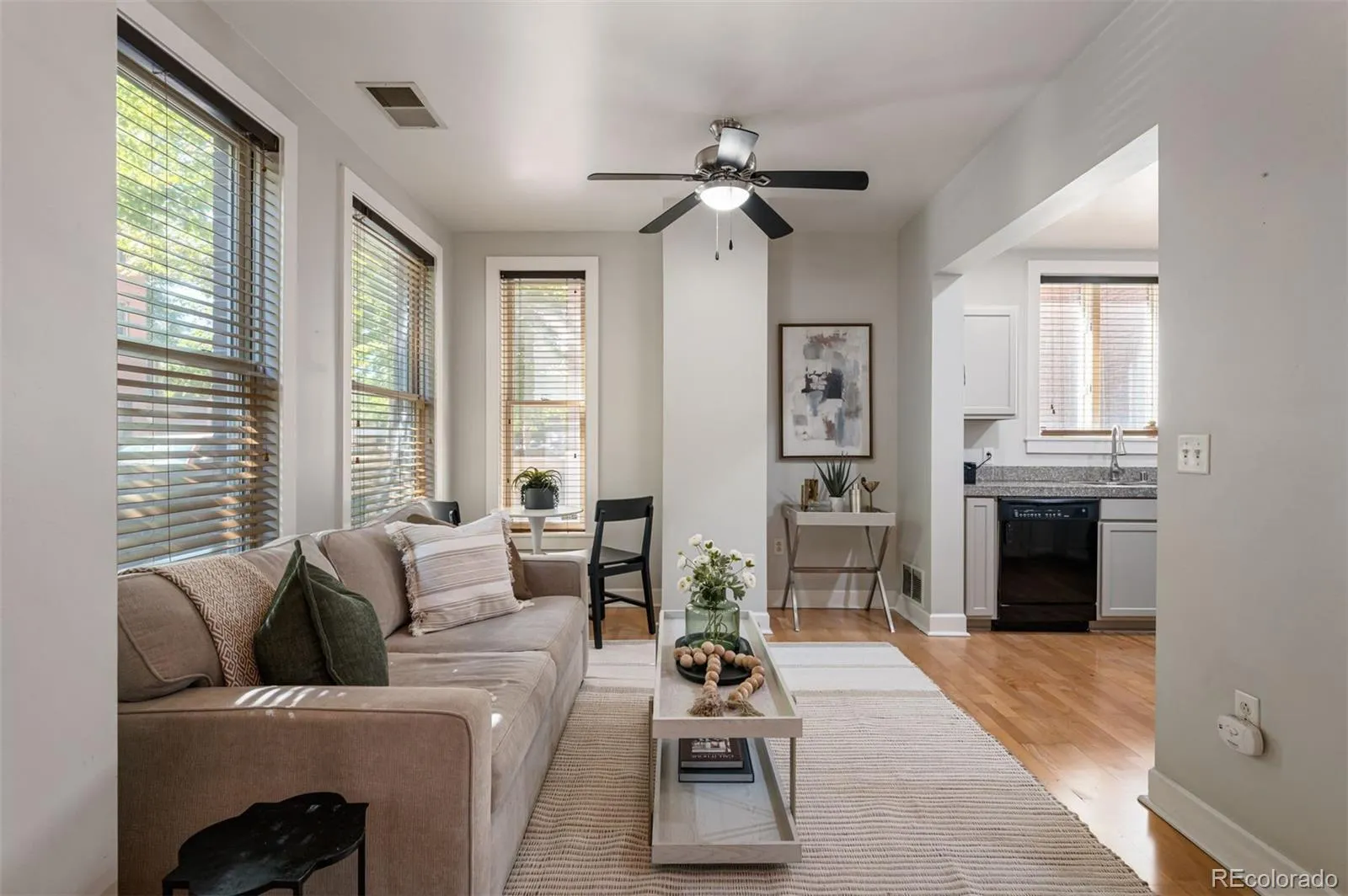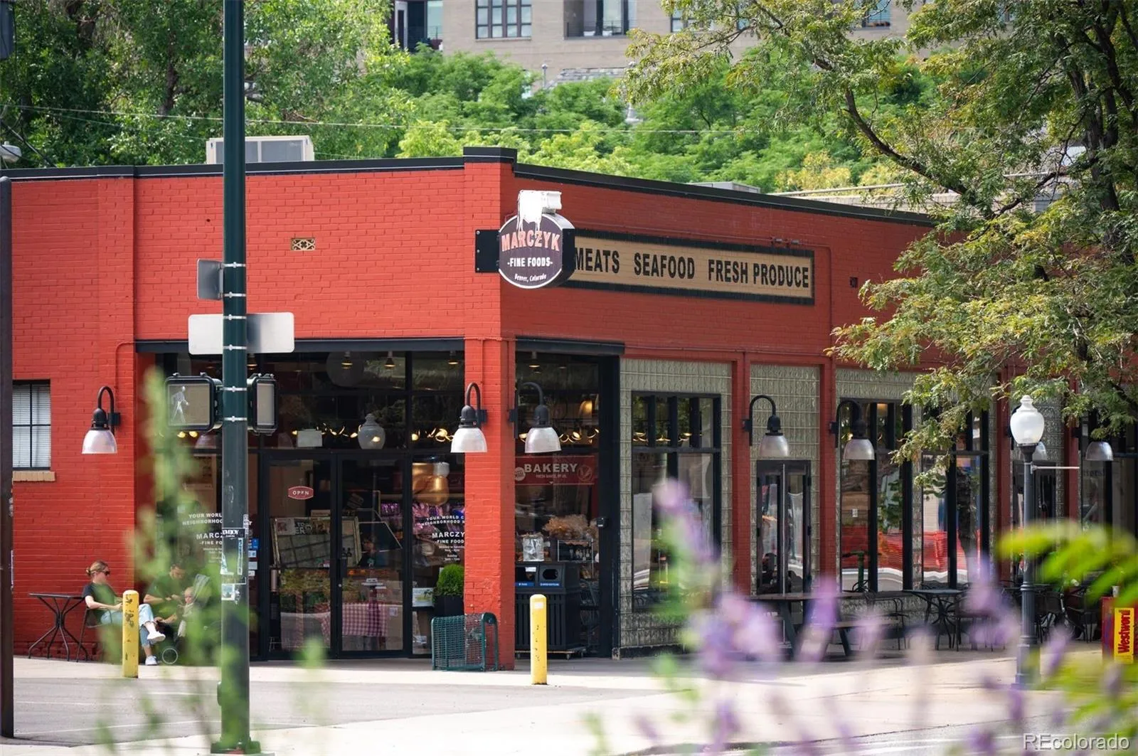 The spacious bedroom includes a huge closet and connects to a large bathroom with an updated shower and generous counter space. Enjoy the convenience of in-unit laundry with a washer and dryer under 5 years old, a wide hallway, and no shared walls for added privacy and quiet. Additional highlights include a Trane HVAC system, low HOA fees, and a dedicated parking spot. Step outside to a huge private patio—perfect for entertaining or relaxing outdoors. Set in a secure, beautifully maintained brick building, this condo offers peace of mind and comfort. Ideally located just steps from Marzyck’s Fine Foods, great restaurants, and local shops, with easy access to downtown Denver and major highways. Move-in ready and loaded with upgrades, this condo combines style, privacy, and convenience—the perfect place to call home!