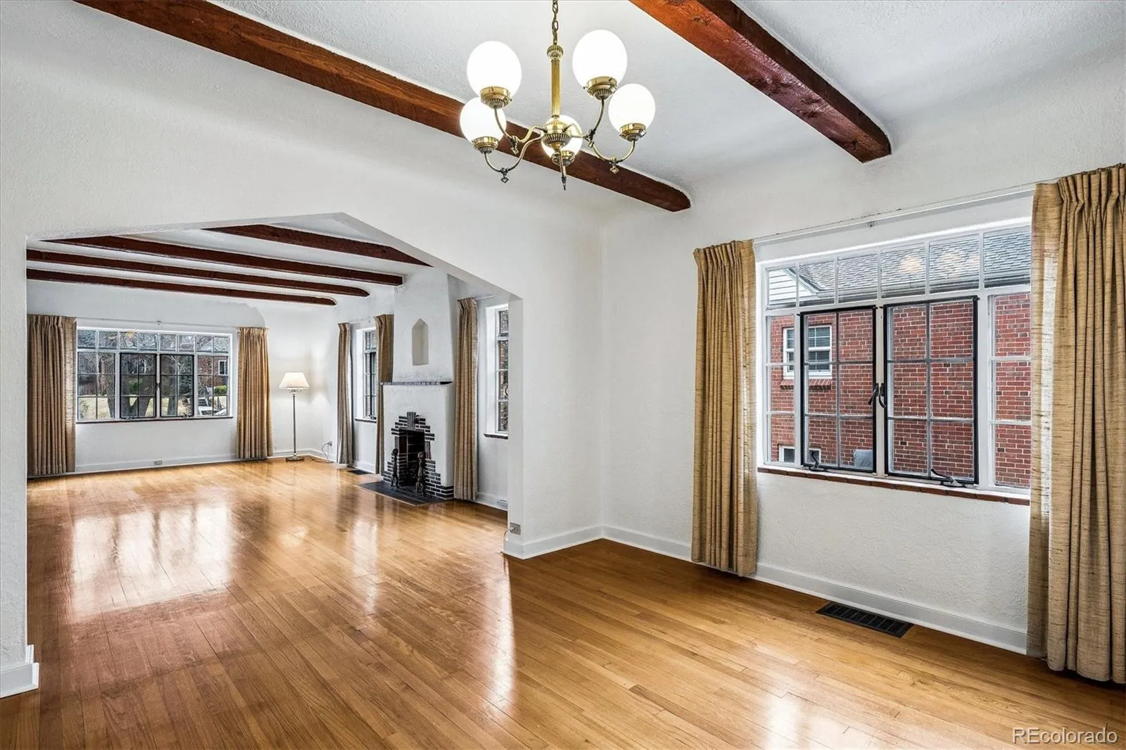 The main level features 3 bedrooms and 1 bathroom and an amazing living room with exposed beams and a wood burning fireplace adding incredible character and charm! The finished basement includes 1 bedroom (non-conforming) and 1 bathroom plus an office that could easily convert into a 5th bedroom, and a massive living room with a wood burning fireplace. There is so much potential!