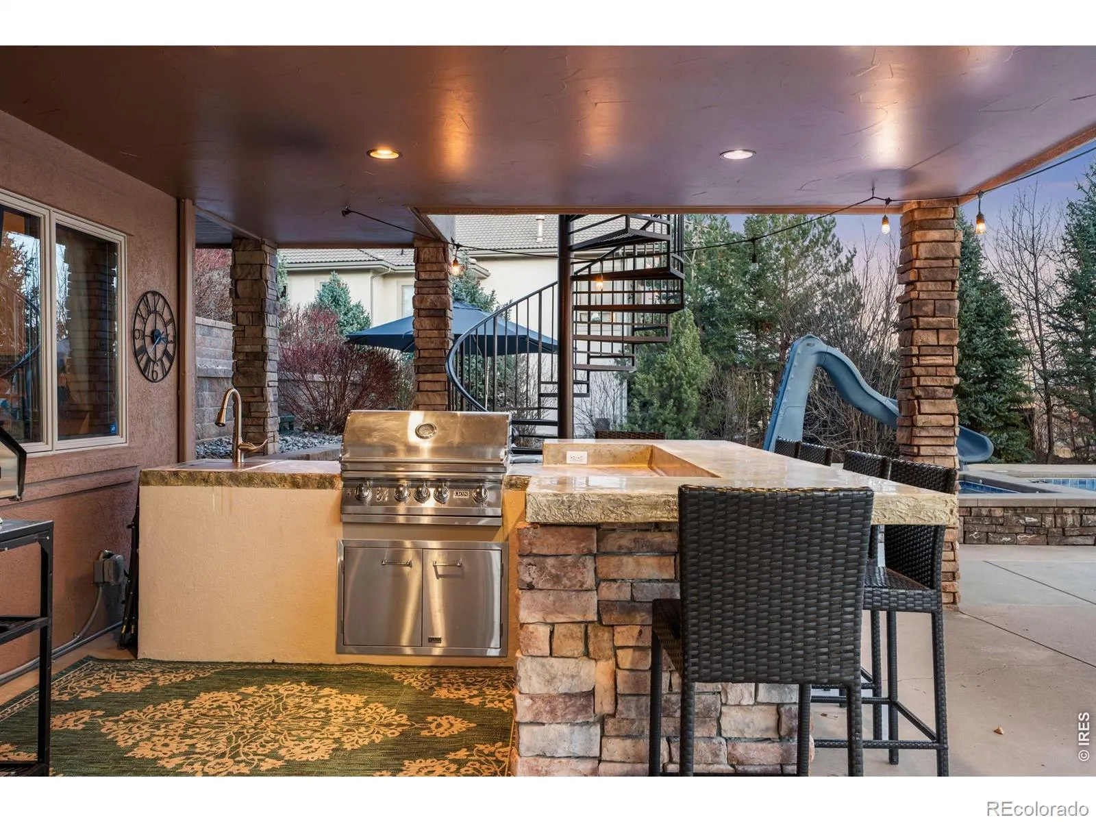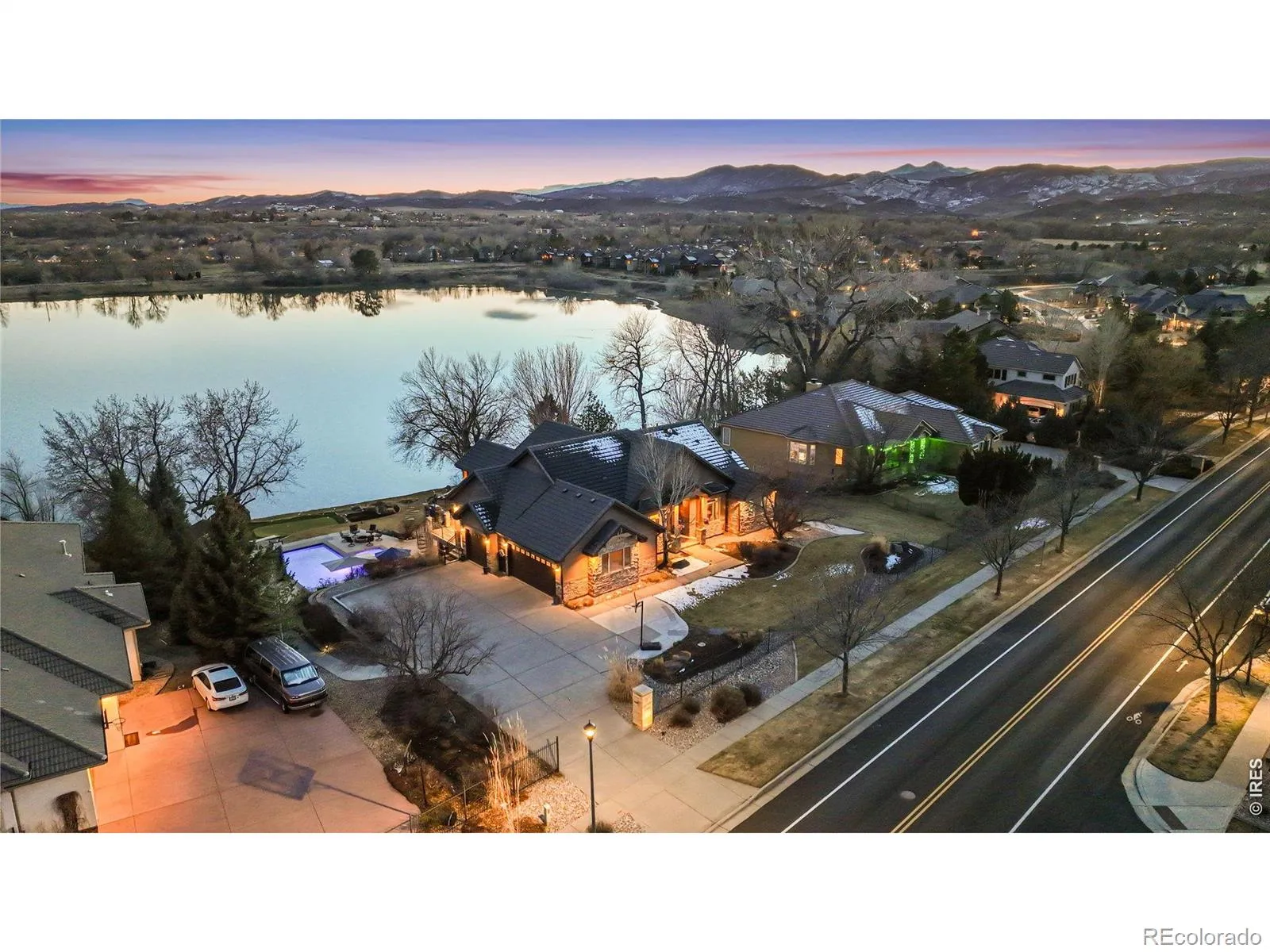 Nestled in the highly sought after Mariana Butte Golf Course neighborhood, this stunning ranch style home offers the perfect blend of luxury, privacy, and breathtaking lake views. Situated on a private lake, this exceptional property provides peaceful waterfront living surrounded by the beauty of the golf course community. Inside, the thoughtfully designed 4 bed, 4 bath floor plan provides both comfort and functionality. The spacious main-level living features a beautiful primary suite retreat, complete with a luxurious spa-inspired bathroom featuring a soaking tub, oversized shower, and a cozy double-sided fireplace separating the bedroom and bath. Step directly onto your private patio overlooking the lake for peaceful mornings or evening sunsets. The home includes a walkout basement ideal for entertaining, highlighted by a stylish wet bar and generous living space. Car enthusiasts and hobbyists will appreciate the 3 car garage with durable epoxy flooring. Step outside to your own private oasis. The backyard boasts a saltwater pool, hot tub, and a personal putting green, creating the ultimate space for relaxation and entertaining while enjoying tranquil lake views. Located in one of the area’s most desirable golf communities, this home also offers the added benefit of no metro tax and no HOA dues-a rare advantage for such a premier setting. This is Colorado living at its finest-where golf course charm, luxury amenities, and lakefront serenity come together in one remarkable home.