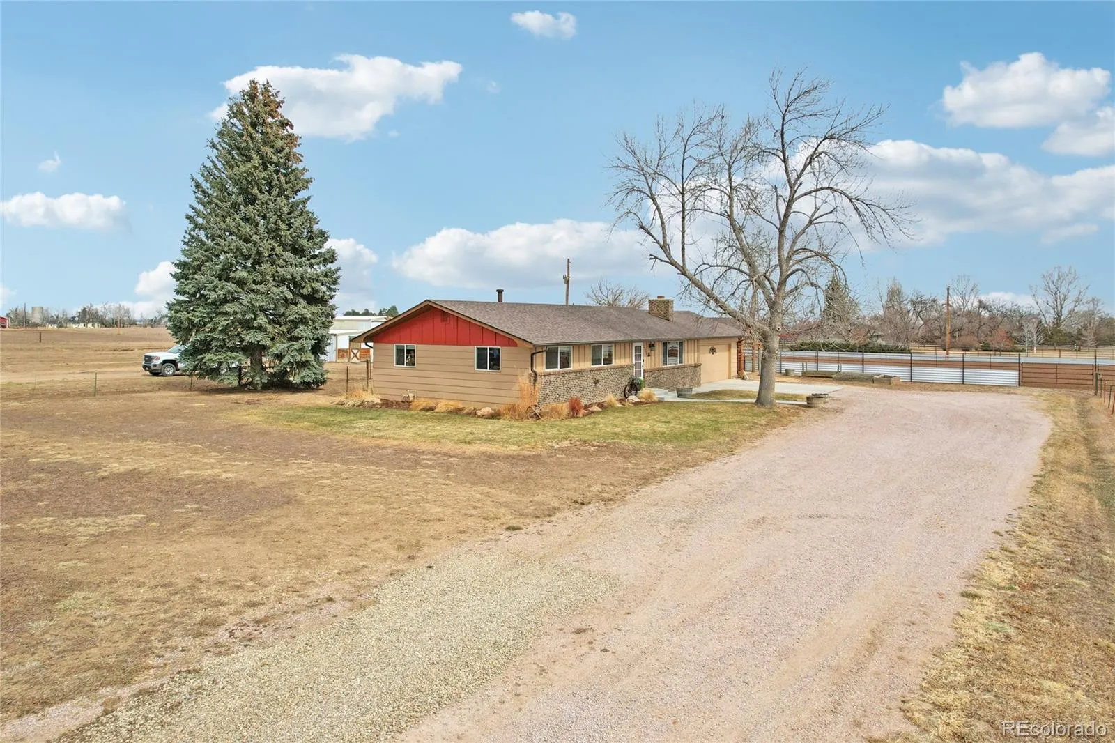 Welcome to 3704 W County Road 4 in Berthoud—an exceptional south-facing 5-acre horse property where the wide-open plains meet the stunning Front Range foothills. Designed with equestrians in mind, this property accommodates up to nine horses and features horse stalls, multiple turnouts, heated automatic waterers, a loafing shed with storage for up to 330 bales of hay, and an impressive 130×250 ft riding arena, along with ample pasture for grazing. The western-style ranch home offers comfortable country living surrounded by scenic views and peaceful Colorado landscapes. The garage has been converted to additional living space, providing flexibility for a family room, studio, or hobby space, and Sellers are willing to convert it back to a garage if desired. A heated storage room adds convenient space for tack, equipment, or workshop use. Recent improvements include a new roof and gutters installed in 2024, and a new furnace will be installed prior to closing. The property is equipped with Starlink internet for reliable connectivity, along with sprinkler and drip irrigation systems to help maintain the landscaping. After a day of riding, gather with friends and family beneath the charming log-cabin style pergola set on concrete—an inviting space for barbecues and relaxing evenings under the Colorado sky. With no HOA, there is plenty of room for trailer parking, RV storage, and all your equestrian equipment. Ideally located just minutes from the charming town of Berthoud, Carter Lake, and miles of outdoor recreation, this property also offers an easy commute to Denver and Denver International Airport, providing the perfect blend of rural lifestyle and convenient access to city amenities.