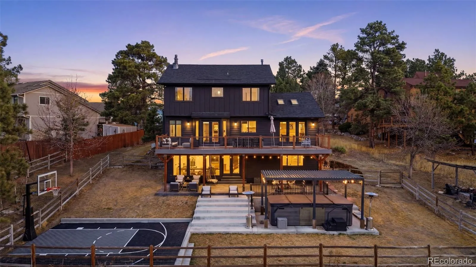 Impressively Appointed Custom in The Pinery w/ over $300k in Renovations! Light & Bright w/ Huge Windows, Clean Lines, Skylights, & a Modern Aesthetic. European Style Kitchen w/ Marble Countertops & Backsplash Plus High-end Cafe Appliances w/ Brushed Brass Hardware! Gas Fireplace Inserts in the Dining Room & Primary Bedroom for Perfect Ambiance Anytime! Custom Interior Handrails! Updated Lighting Throughout! Secondary Bedrooms Upstairs w/ a Timeless Jack & Jill Full Bathroom. Fully Remodeled Primary Suite – plus another Deck – where Luxury truly meets Relaxation! Full Exterior Renovation (2022) including Hardie Board Siding, Skylights, New Garage Door, New Front Door, New Primary Balcony Door, and a New Roof! The Outdoor Living is just as impressive w/a TimberTech Composite Deck Sprawling the Full Back Side of the Home and a Lower Level Stamped Concrete Covered Patio to take in the Tranquility of the Tree Lined Green Space Behind! The Swim Spa, Basketball Court w/in Ground Hoop, & Fire Pit Area are All Included! Other Features Include: High Efficiency Tankless Water Heater, Central AC, Humidifier, Wireless Google Nest Doorbell & Cameras, a Rachio Smart Sprinkler Controller for Front & Back, New Driveway, New Retaining Wall, and an 8X8 Storage Shed! The Fully Finished Walkout Basement is the Perfect Set Up! A Huge Family Room or Media Room w/ Kitchenette Area, a Dedicated Exercise Room or Craft/Office Area, and an In-Law Suite, Teenager Haven, Guest Suite, Office…you name it! The Basement has Radiant Flooring Throughout & the Bathroom has been Fully Remodeled including a Luxurious Marble Shower! Enjoy Award-Winning Douglas County Schools, Miles of Neighborhood Trails, Bingham Lake, and Membership-based access to The Pinery Country Club (Golf, Social, Pool, Tennis). Located in Unincorporated Douglas County w/ Super Low Property Taxes! Don’t miss this Move-In Ready, Character-Rich Property in one of Parker’s most Coveted & Desirable Neighborhoods! The List Goes On…