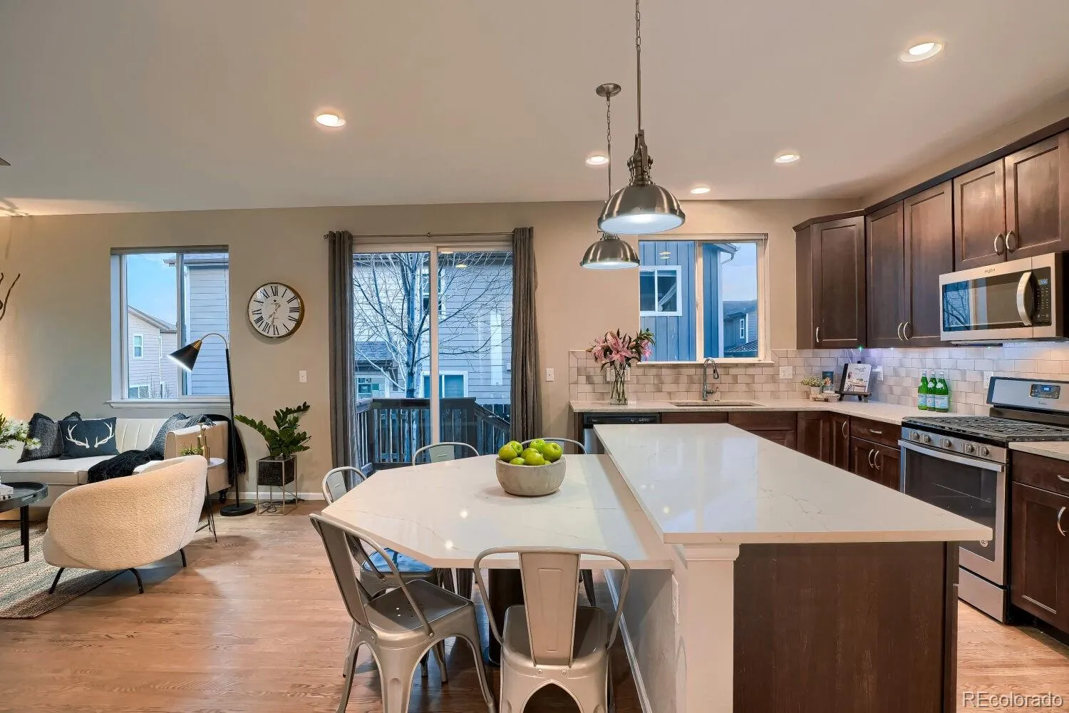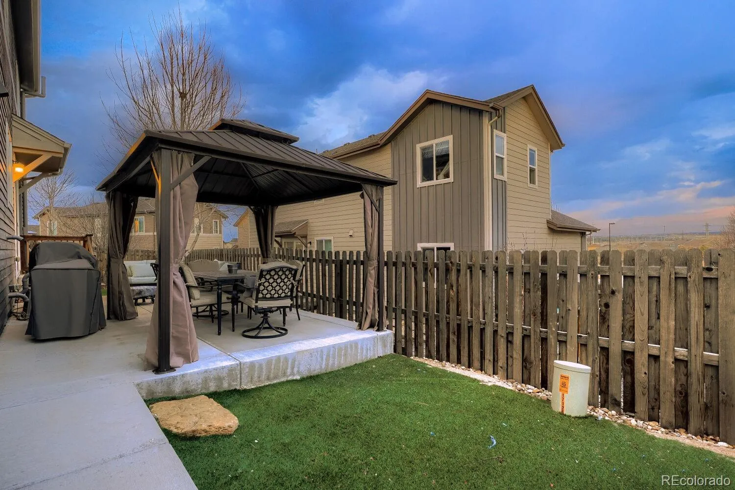 10K Price Improvement! Beautifully updated and move-in ready, this 3-bedroom, 4-bathroom home sits on a quiet cul-de-sac and offers stylish comfort with low-maintenance exterior living. Recent improvements provide peace of mind, including new exterior paint, sod, and refreshed landscaping in 2025, along with new interior paint, brand-new carpet, and professional cleaning completed in 2026. The thoughtfully maintained exterior and landscaping create an easy-care yard so you can spend more time enjoying the home rather than maintaining it. Inside, warm hardwood floors flow throughout the main level while large windows fill the home with natural light. The inviting living room centers around a gas fireplace with a new tile surround, creating a cozy focal point for gathering. The kitchen blends function and style with quartz countertops, and a custom two-tier eat-in island. Stainless steel appliances include a side-by-side refrigerator, and a 5-burner gas stove, and custom pendant lighting. Upstairs, the private primary suite offers a peaceful retreat with a spacious walk-in closet and ensuite bath featuring dual sinks and a walk-in shower. Two additional generously sized bedrooms and a full bathroom complete the upper level. The laundry room is conveniently located on the second floor and includes the washer and dryer. The finished basement adds valuable living space and features a ¾ bathroom, making it ideal for a media room, recreation area, home office, or guest space. The fully fenced backyard is designed for easy enjoyment with low-maintenance landscaping and a charming pergola that creates a shaded space perfect for relaxing or outdoor dining. A two-car garage provides ample parking and storage. Residents also enjoy neighborhood amenities including a community pool and playground. Located just minutes from downtown Parker’s shops, restaurants, and local events, with quick access to E-470 and I-25, this home offers both comfort and convenience in a great spot!
