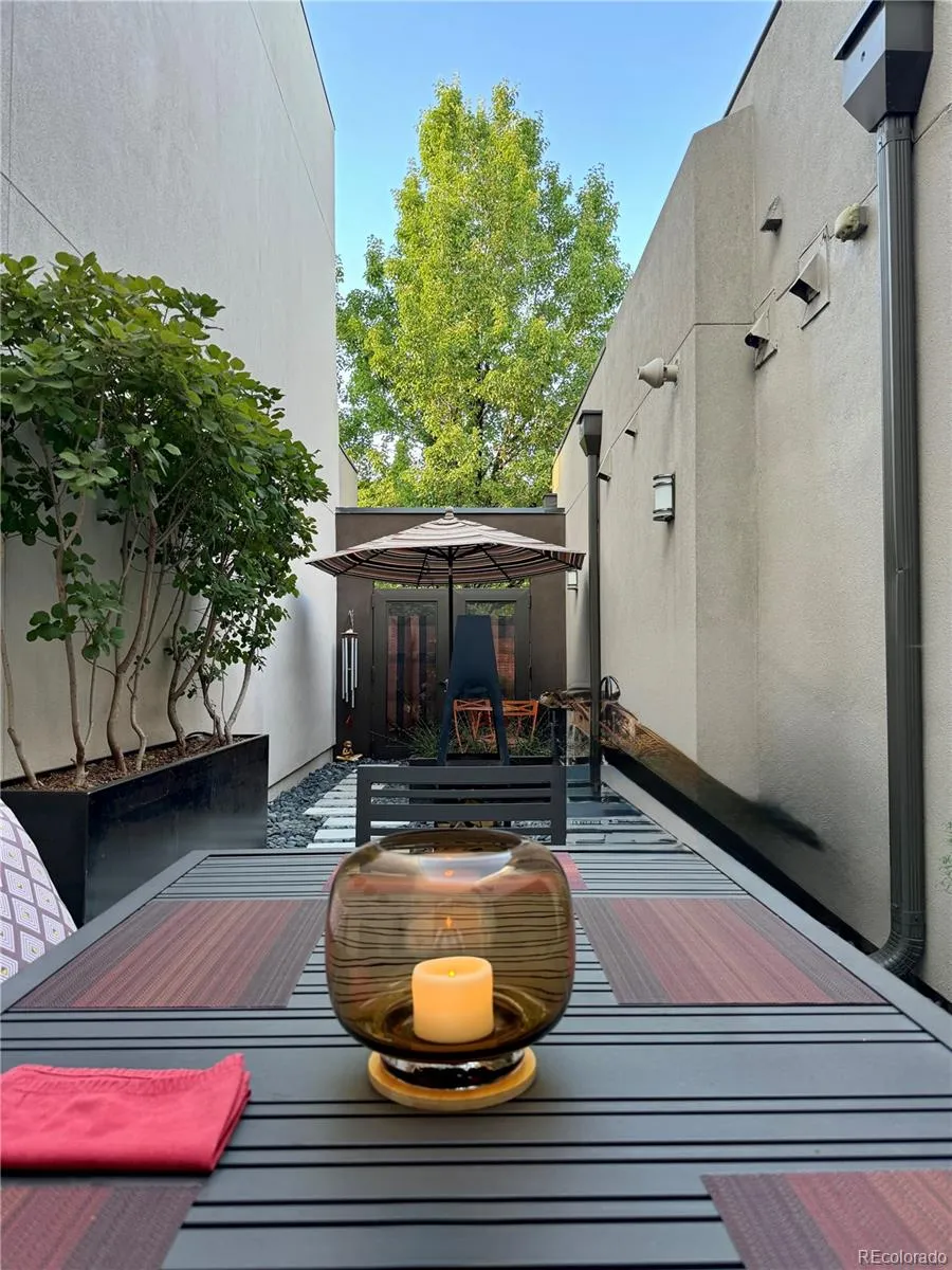 Welcome to this stunning two-bedroom, three-bathroom contemporary townhome in the heart of Central Park, offering a thoughtfully designed layout and exceptional indoor-outdoor living. Designed for both entertaining and everyday comfort, the open-concept main level showcases refined finishes and premium details throughout. The light-filled living room features a gas fireplace and expansive floor-to-ceiling windows with electronic window coverings. At the front of the home, a main-floor office provides flexible space for remote work or a study area. The gourmet kitchen is equipped with stainless steel appliances, a large center island, and direct access to a private patio, perfect for extending your living space outdoors. A convenient powder room and a dedicated laundry room complete the main floor. Upstairs, the primary suite offers canopy lighting, a private balcony, and an ensuite bath with elegant tile finishes and a spacious closet. An additional bedroom with its own private balcony and full bath provides comfortable accommodations and versatile living options. The rooftop patio showcases expansive mountain views and a gas fireplace, creating a welcoming setting for relaxing or entertaining. Additional highlights include surround sound throughout the home, an attached two-car garage with substantial lofted storage, and major system updates completed in 2023, including a new furnace, air conditioning unit, and water heater. Conveniently located near the 29th Avenue Town Center’s retail and dining, this townhome offers a seamless blend of modern comfort, functionality, and access to everything Central Park has to offer.