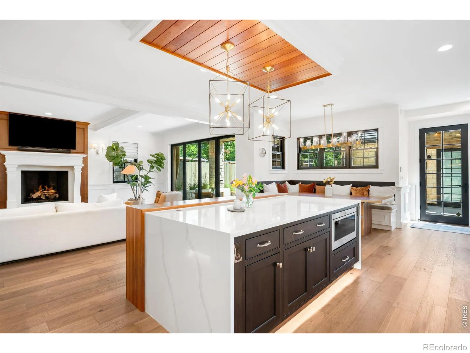 Striking modern architecture meets elevated functionality in this East Wash Park stunner, designed for those whoappreciate luxury, space, natural light, and architectural detail. Situated on a prominent corner lot just blocks from SouthGaylord Street, this limestone residence blends architectural presence with refined modern living. Spanning over 6,000square feet, the home is defined by dramatic lines, custom craftsmanship, and walls of glass that dissolve the boundarybetween indoors and out. The main level showcases 10-foot coffered ceilings, a statement floating staircase, and seamlessindoor-outdoor flow to a covered patio with overhead heating and built-in gas fireplace. The kitchen features Sub-Zero andWolf appliances, dual quartz islands, and thoughtful custom cabinetry. Upstairs, four bedrooms include a serene primarysuite with steam shower, soaking tub, walk-in closet, and built-in morning bar. A third-floor flex suite with full bath opensto a west-facing rooftop deck with skyline views-ideal for guests, au-pair, home office, gym or party room. Downstairs,11-foot ceilings elevate the fully finished basement, which offers a large recreation room, wet bar, gym, guest bedroom,and full bathroom. Originally completed in 2021 by respected local luxury builder Cline Design Group, the home has sincebeen elevated with over $200,000 in upgrades including bespoke window coverings throughout, a fully integrated AV andControl4 smart-home system, and a Culligan whole-house water filtration system with reverse osmosis. 240V outlet in theoversized garage provides EV charging capabilities. Every detail, such as the full limestone exterior facade and cement tileroof, speaks to quality and intention, offering a residence that balances timeless design with contemporary sophisticationin one of Denver’s most established neighborhoods.