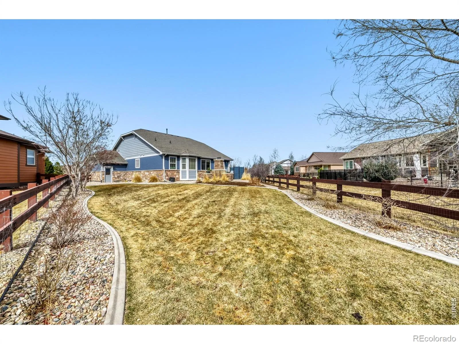 This thoughtfully designed home features a dedicated office, a spacious living room with soaring ceilings and a corner fireplace, and a large modern kitchen with an island offering bar seating that flows effortlessly into the living and dining areas. The primary suite includes an ensuite bath with dual sinks, a soaking tub, a walk-in shower, and a walk-in closet, with one additional bedroom rounding out the main living space. The unfinished basement offers room to grow and is currently set up as an exercise space. A 3-car garage adds exceptional storage and convenience. Outside, a beautifully landscaped backyard features a covered patio, a stone fireplace, and lush greenspace.Windsor offers an exceptional array of nearby amenities. Dining options include Windsor Mill Tavern, The Lodge, The Grainhouse, Ted’s Backyard, and Peculier Brewing Co. Grocery needs are covered by King Soopers, Safeway, and Esh’s Grocery Market. Outdoor enthusiasts will appreciate Boardwalk Community Park, and the Windsor Community Recreation Center is just minutes away.Click the Virtual Tour link to view the 3D walkthrough. Discounted rate options and no lender fee future refinancing may be available for qualified buyers of this home.